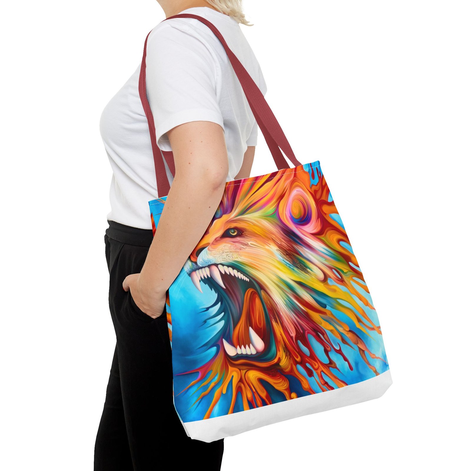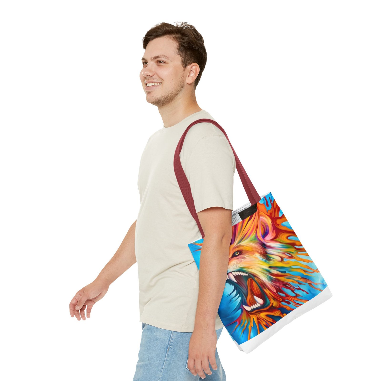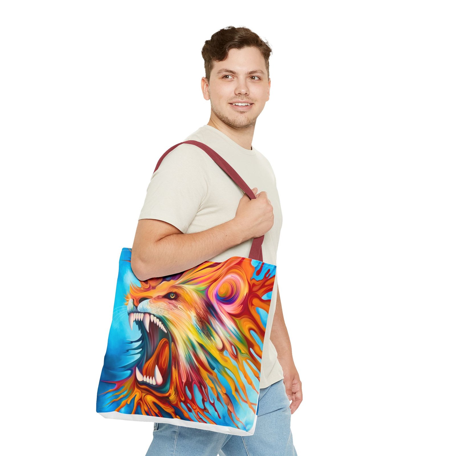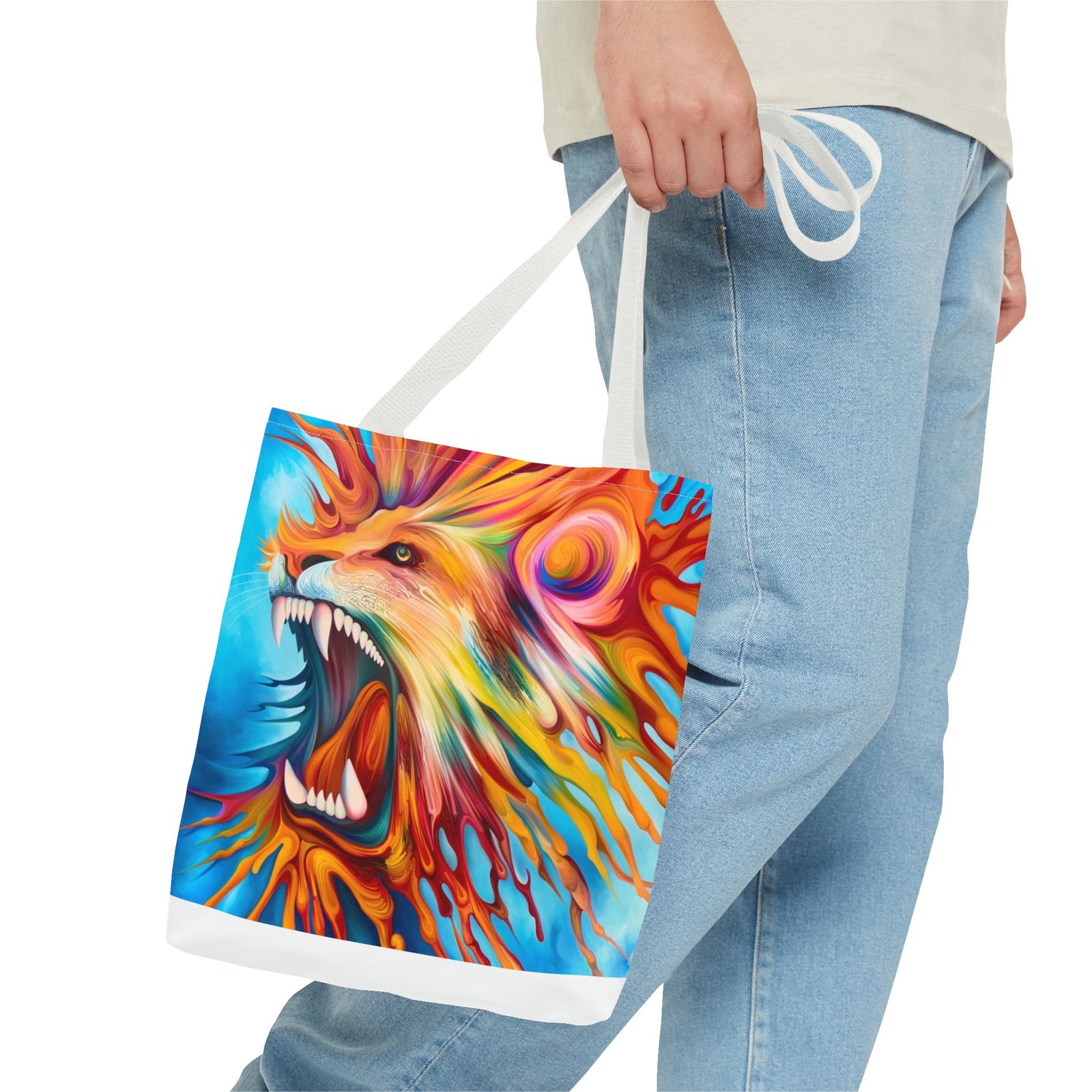 Introducing a vibrant Tote Bag that brings an energetic and artistic flair to your everyday style. This stunning accessory showcases a dynamic lion design, perfect for making a bold statement. Its lightweight yet durable polyester fabric makes it ideal for daily use, whether you’re heading to the farmers market, gym, or out on a casual day. Designed for art lovers and nature enthusiasts, this tote effortlessly blends functionality with style. It’s perfect for gifting on occasions like birthdays, back-to-school season, or as a thoughtful surprise for friends. Celebrate your passion for creativity and nature with this eye-catching bag that’s versatile for any adventure!
