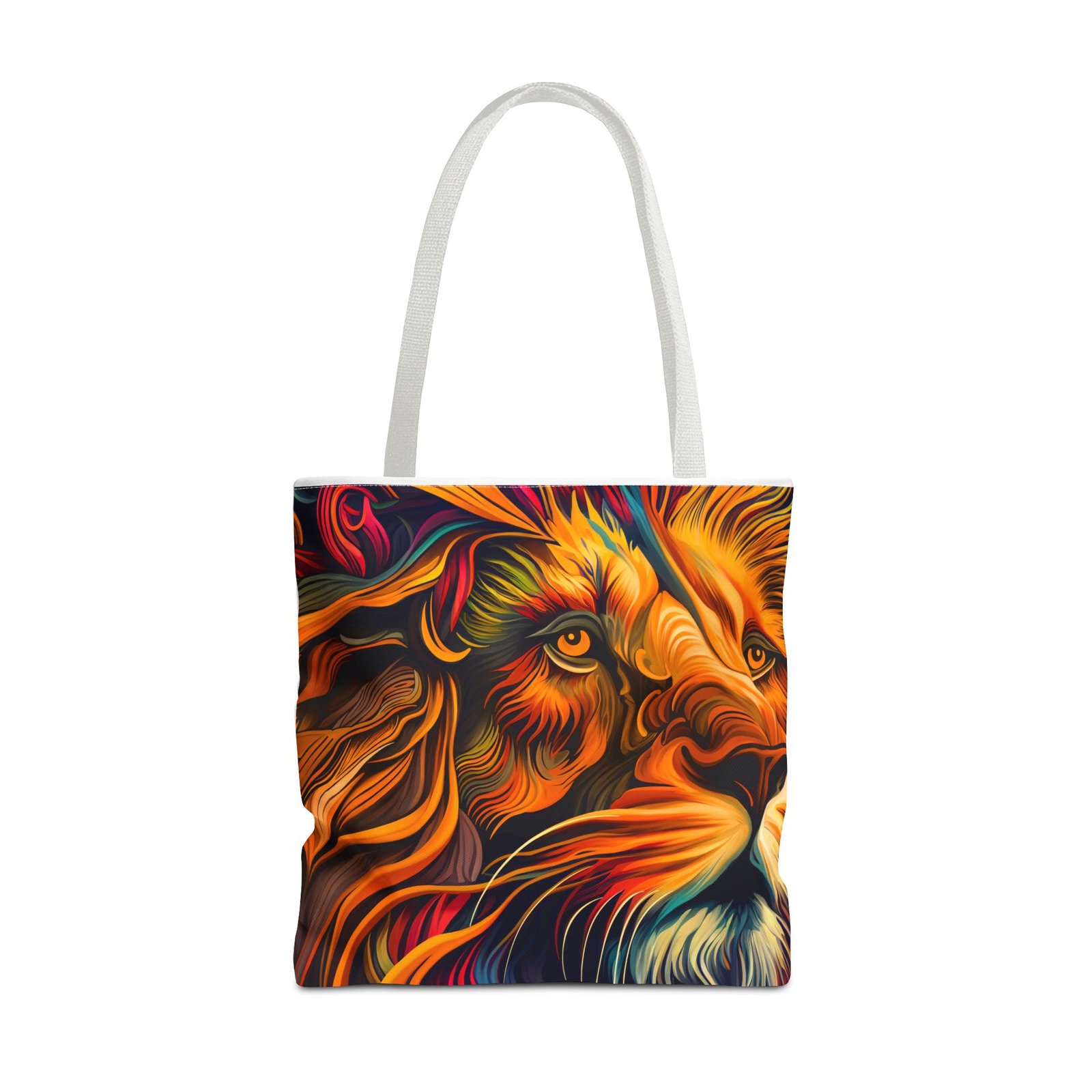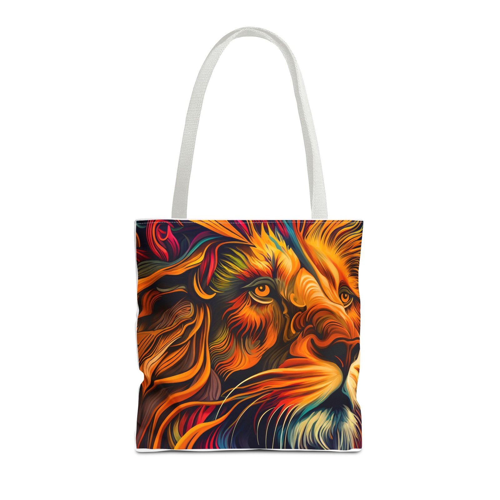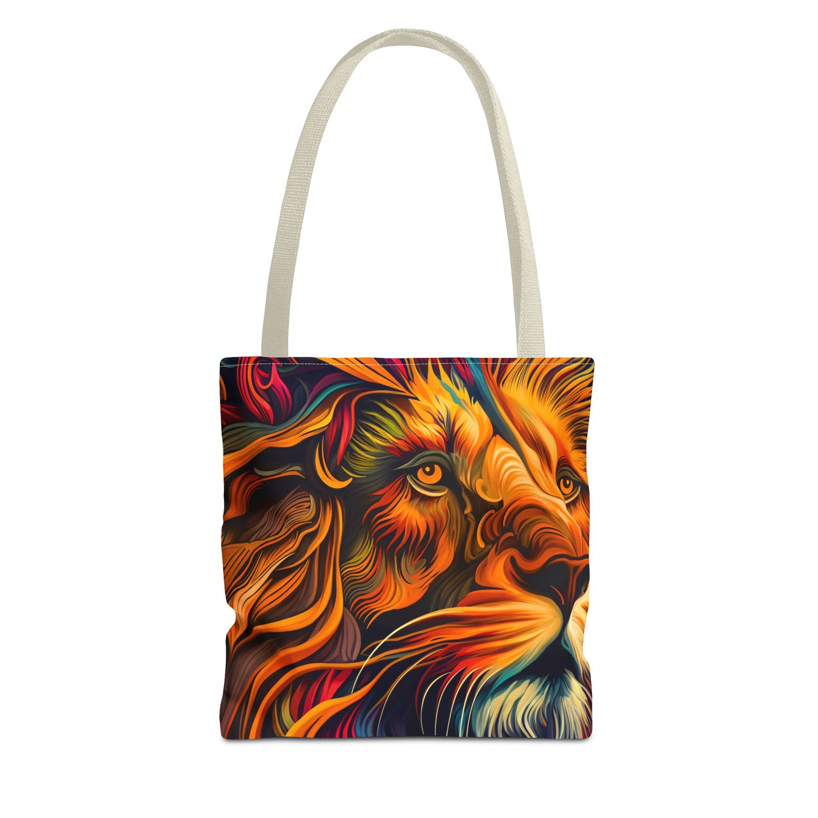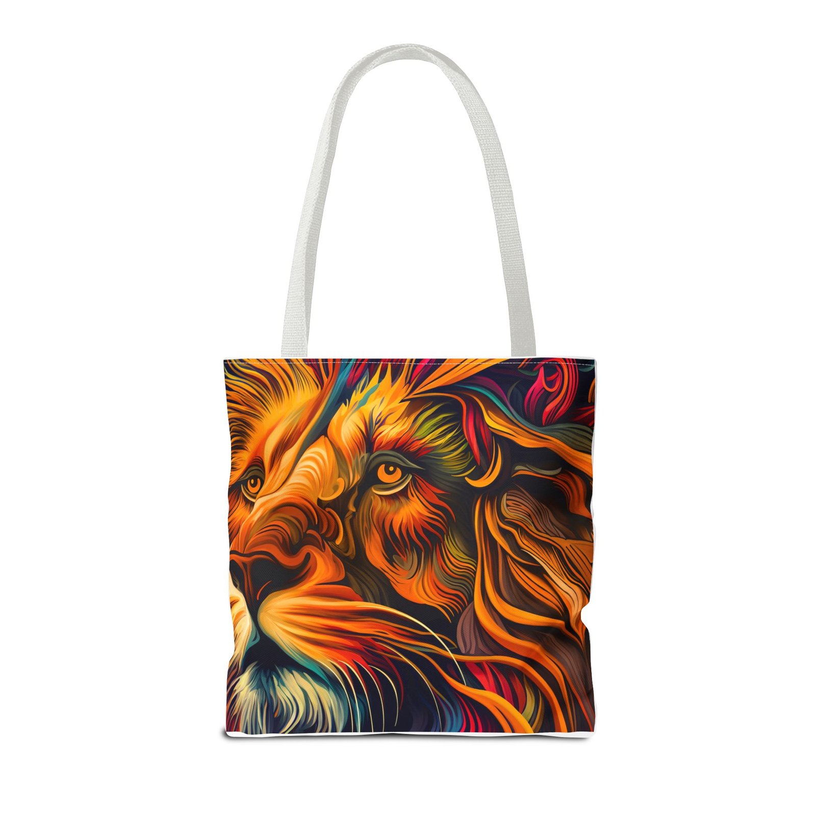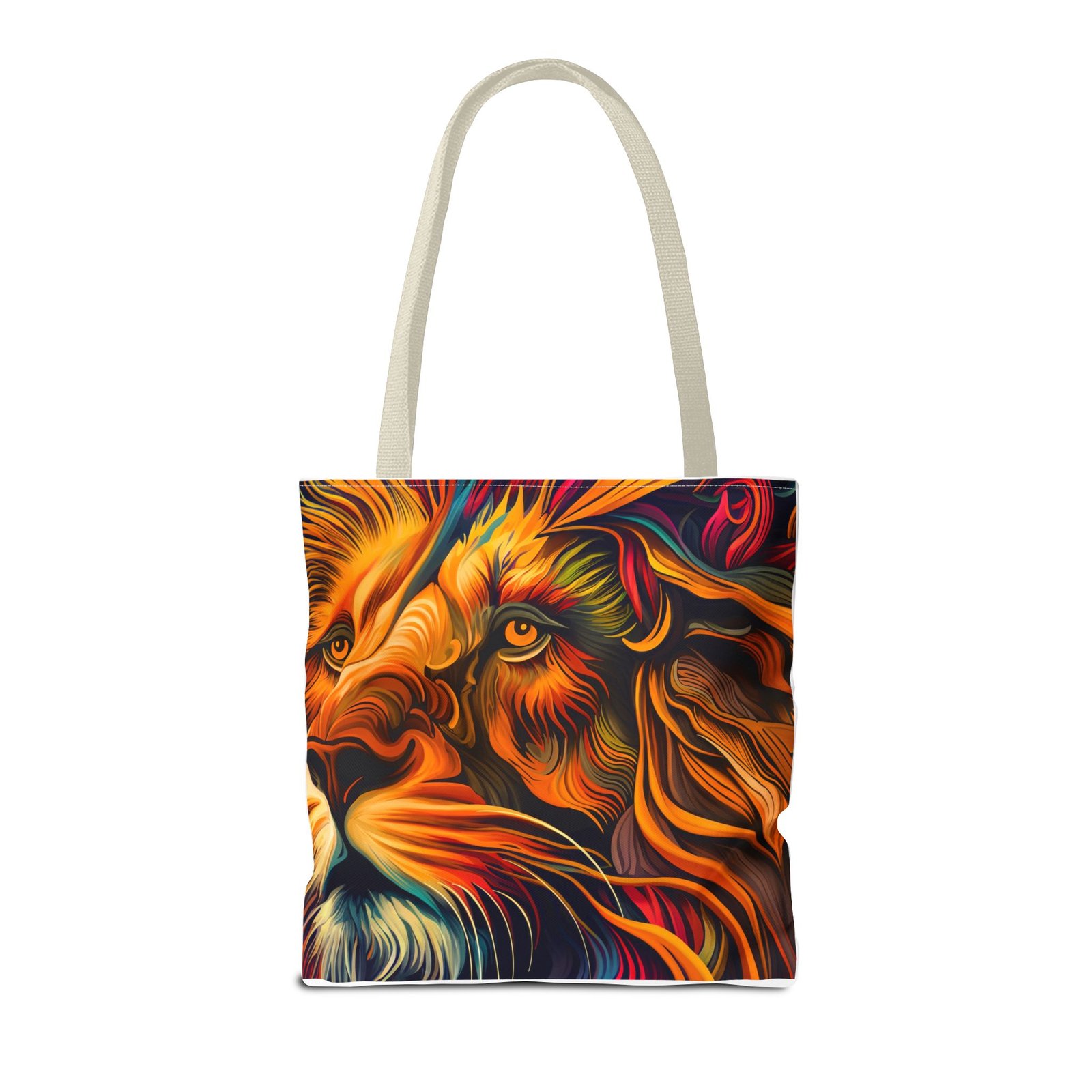 Elevate your everyday style with this stunning Tote Bag. Made from 100% polyester, this bag is not only durable but also incredibly lightweight, making it perfect for your daily adventures. The vibrant lion design adds a bold touch, inspiring confidence and creativity with every use. With a spacious interior, it provides ample room for your essentials whether you’re heading to the beach, work, or a weekend getaway. This versatile tote bag appeals to animal lovers, fashion enthusiasts, and anyone looking to make a statement. Ideal for birthdays, holidays, or as a thoughtful gift for those who love unique accessories. Carry it on your errands or use it for shopping; it’s the perfect companion for all occasions!