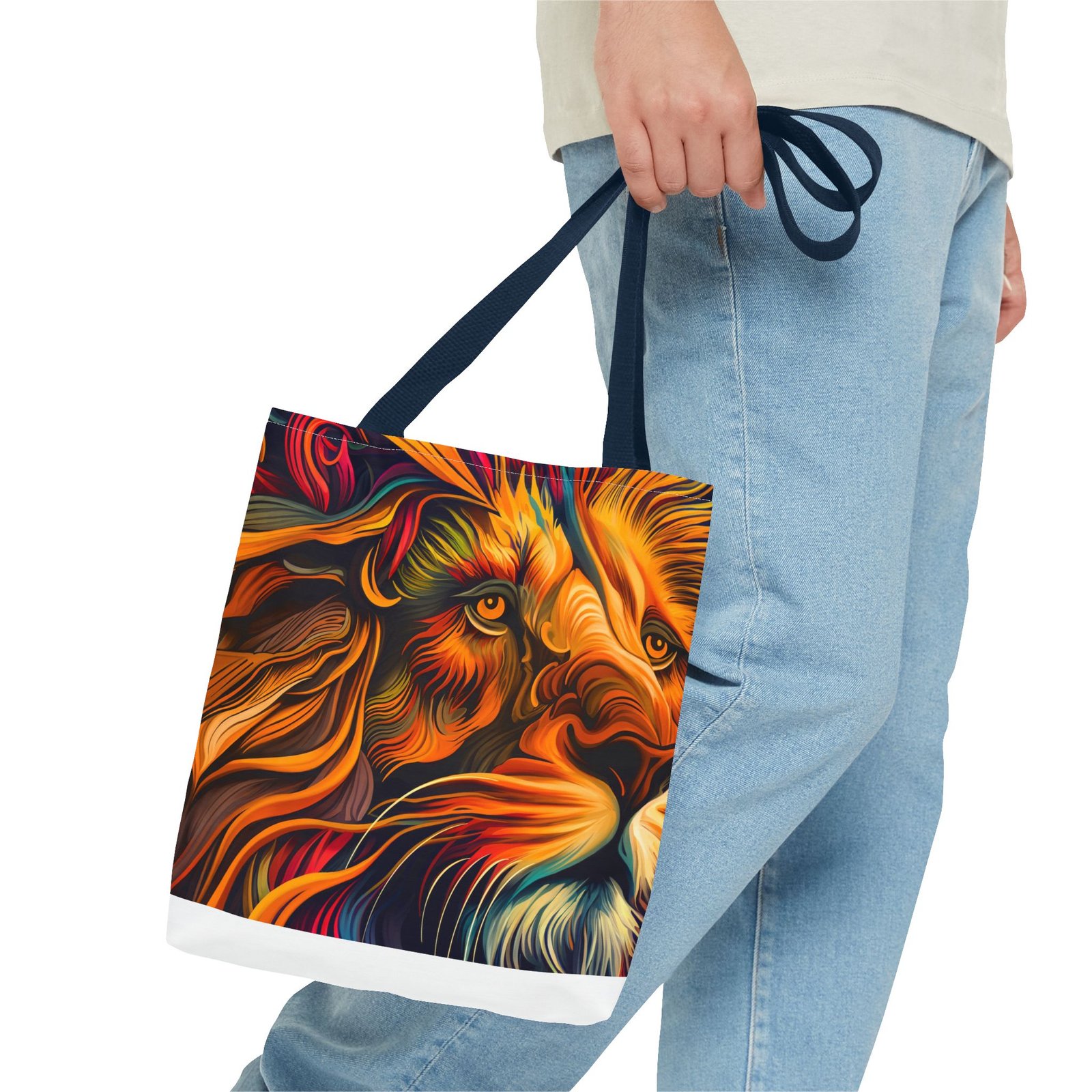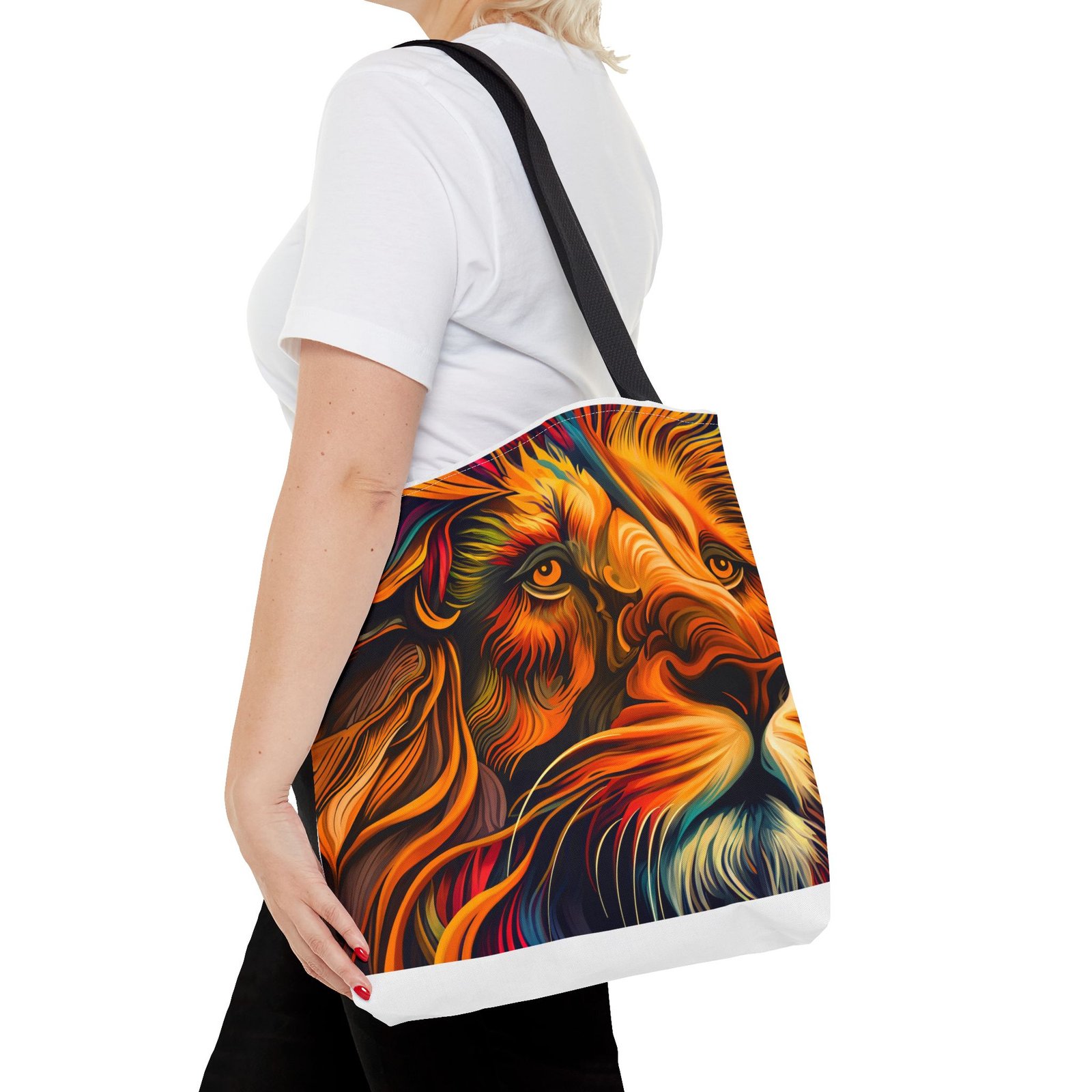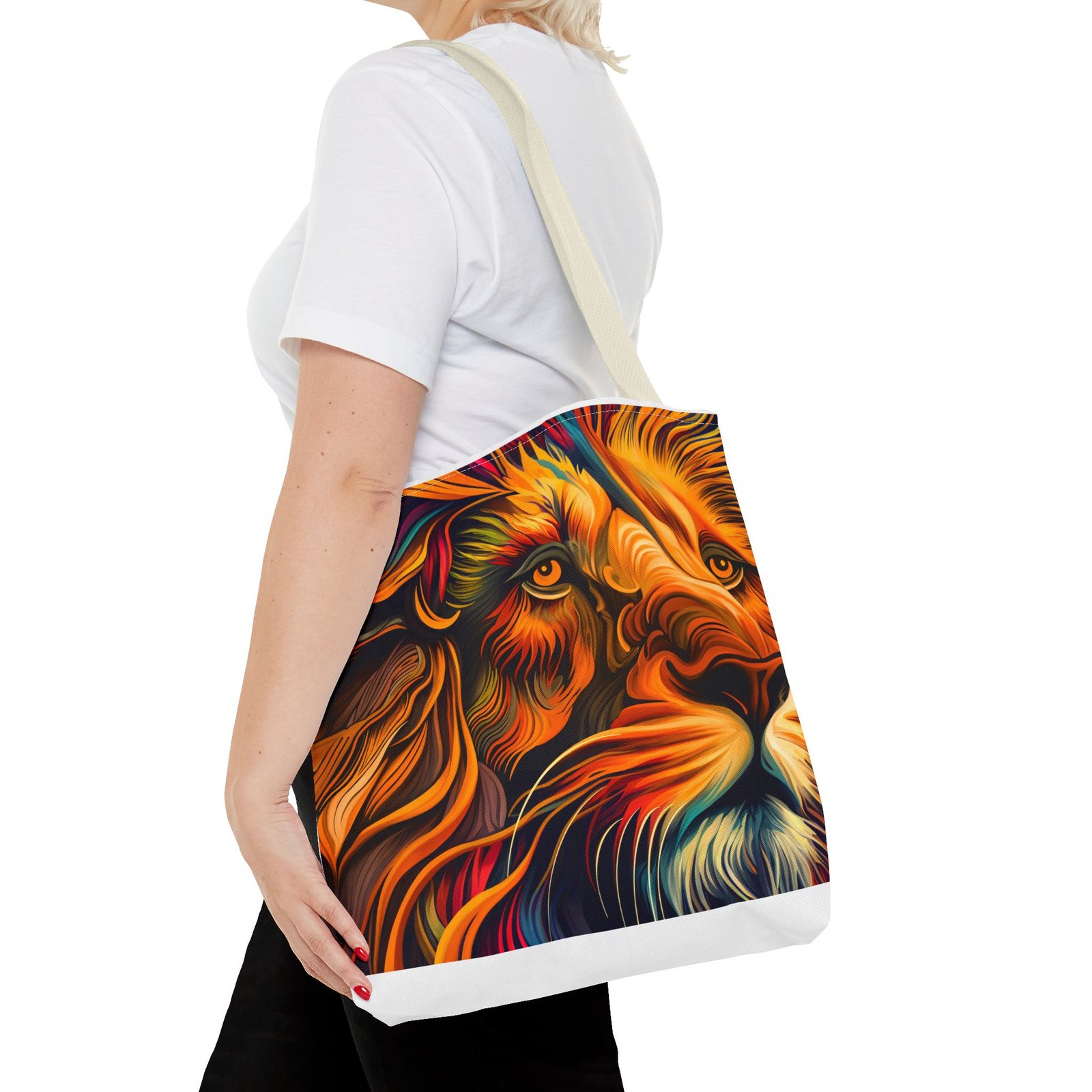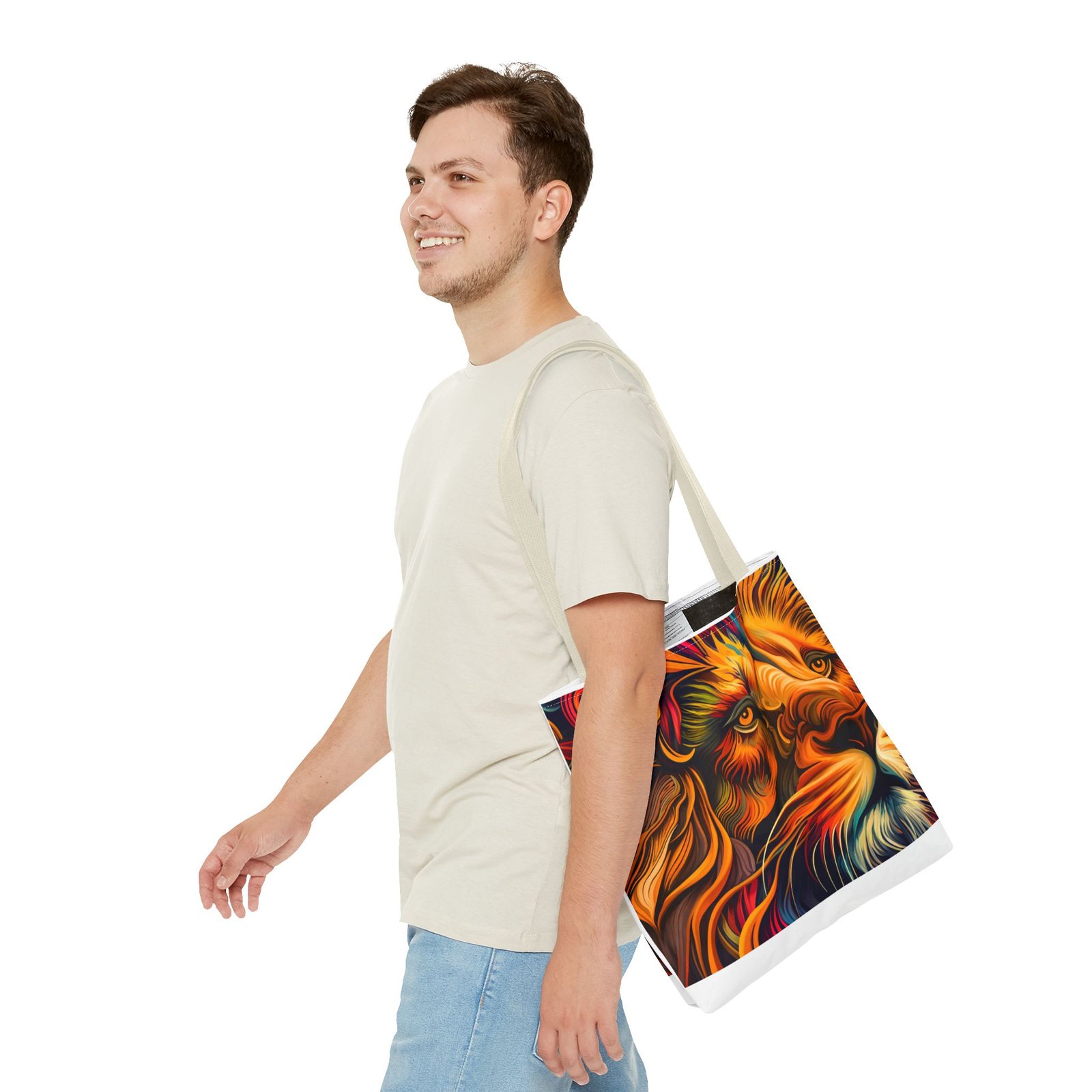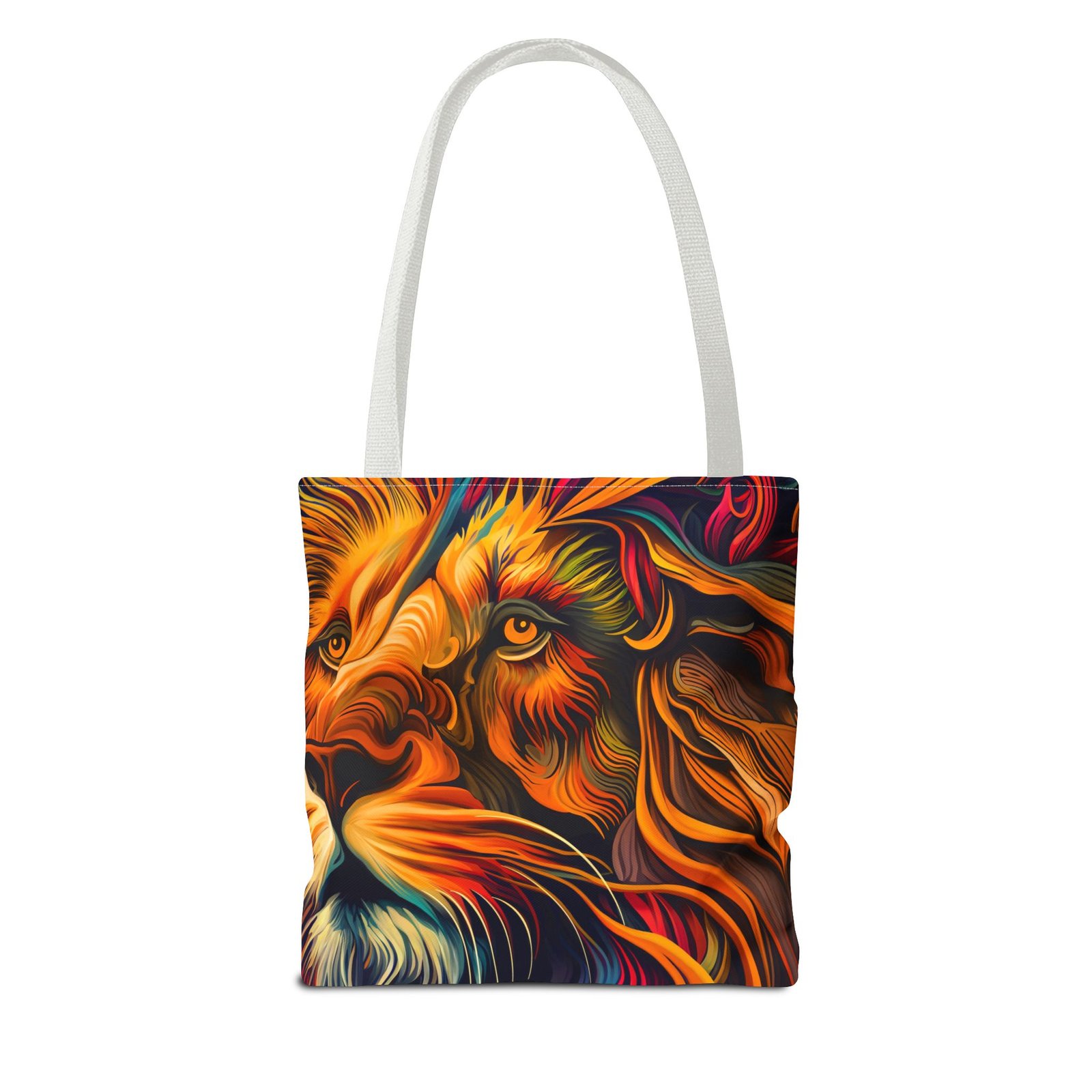 Elevate your everyday style with this stunning Tote Bag. Made from 100% polyester, this bag is not only durable but also incredibly lightweight, making it perfect for your daily adventures. The vibrant lion design adds a bold touch, inspiring confidence and creativity with every use. With a spacious interior, it provides ample room for your essentials whether you’re heading to the beach, work, or a weekend getaway. This versatile tote bag appeals to animal lovers, fashion enthusiasts, and anyone looking to make a statement. Ideal for birthdays, holidays, or as a thoughtful gift for those who love unique accessories. Carry it on your errands or use it for shopping; it’s the perfect companion for all occasions!