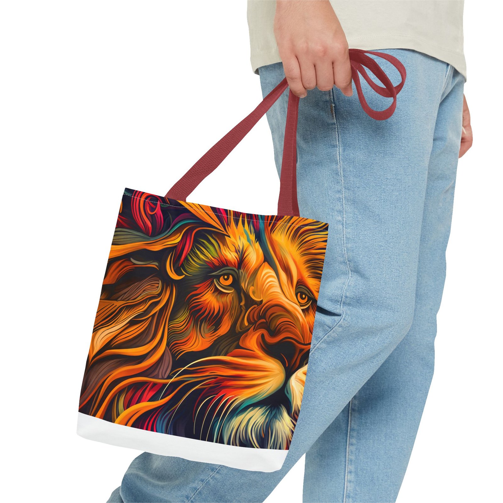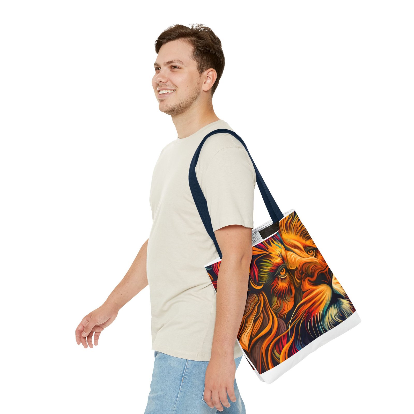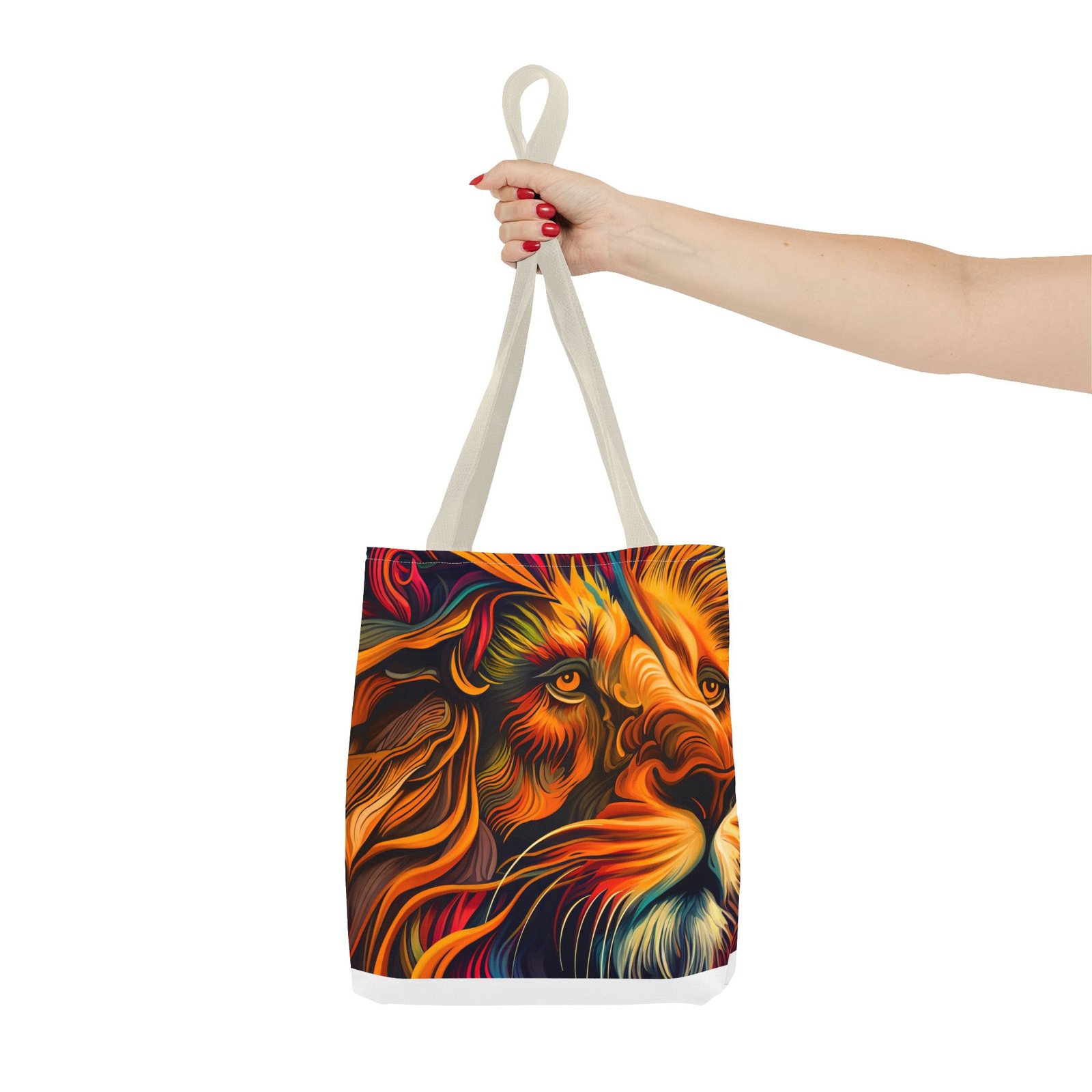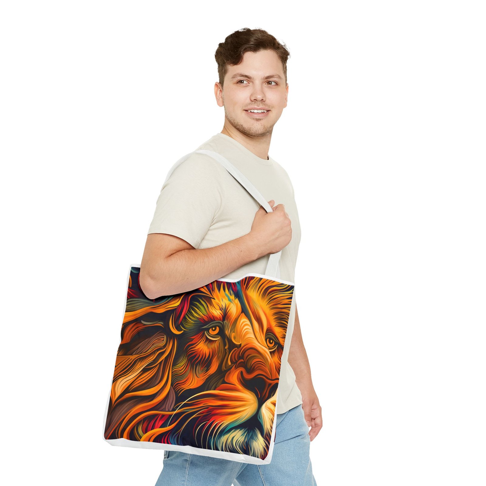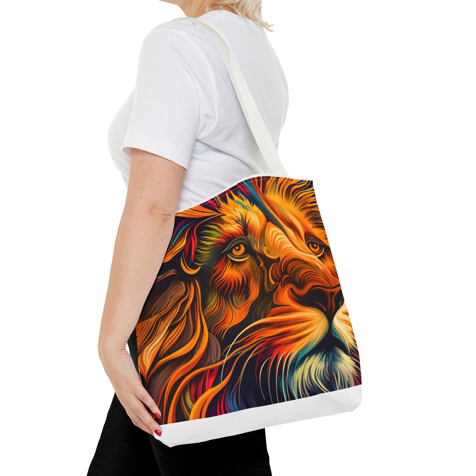 Elevate your everyday style with this stunning Tote Bag. Made from 100% polyester, this bag is not only durable but also incredibly lightweight, making it perfect for your daily adventures. The vibrant lion design adds a bold touch, inspiring confidence and creativity with every use. With a spacious interior, it provides ample room for your essentials whether you’re heading to the beach, work, or a weekend getaway. This versatile tote bag appeals to animal lovers, fashion enthusiasts, and anyone looking to make a statement. Ideal for birthdays, holidays, or as a thoughtful gift for those who love unique accessories. Carry it on your errands or use it for shopping; it’s the perfect companion for all occasions!
