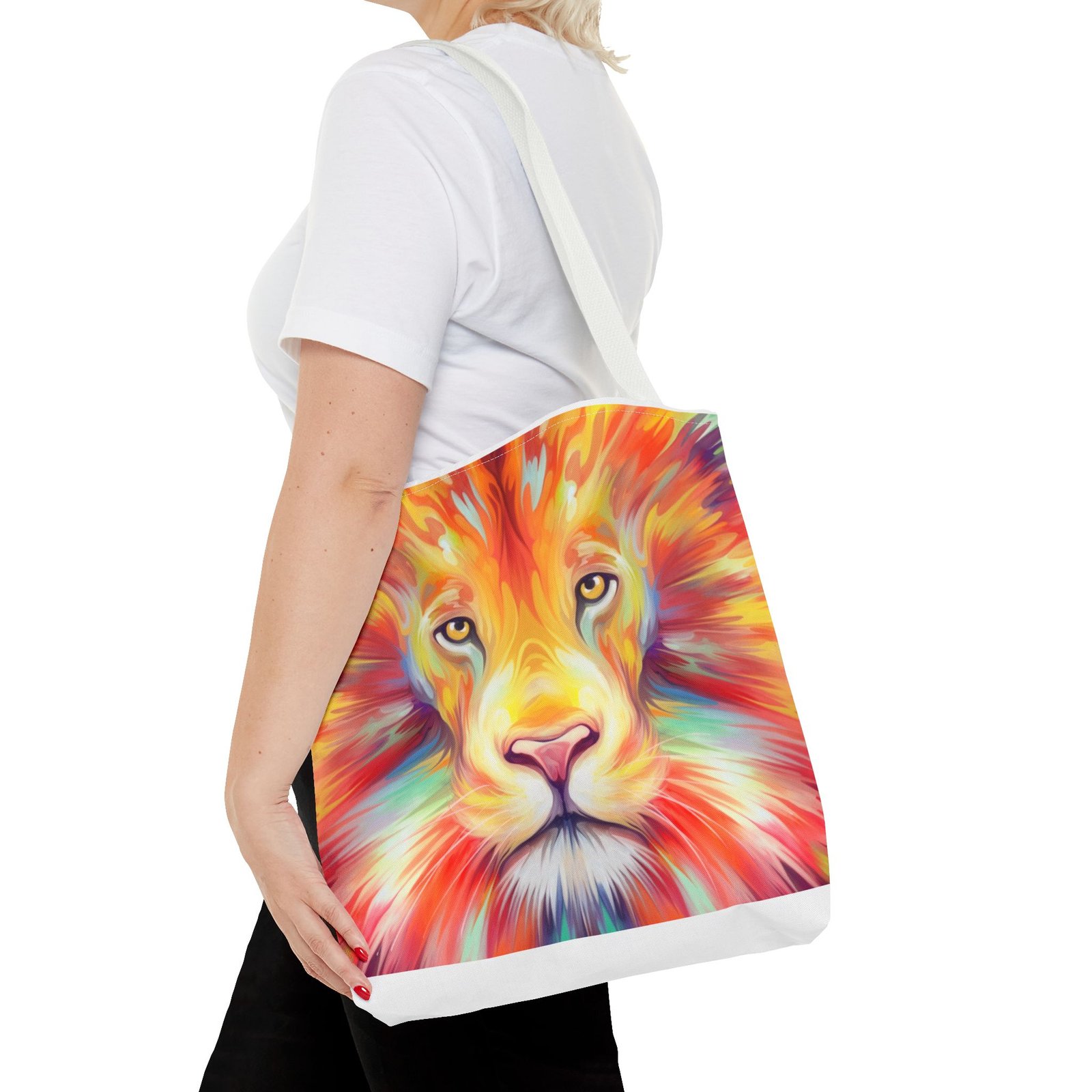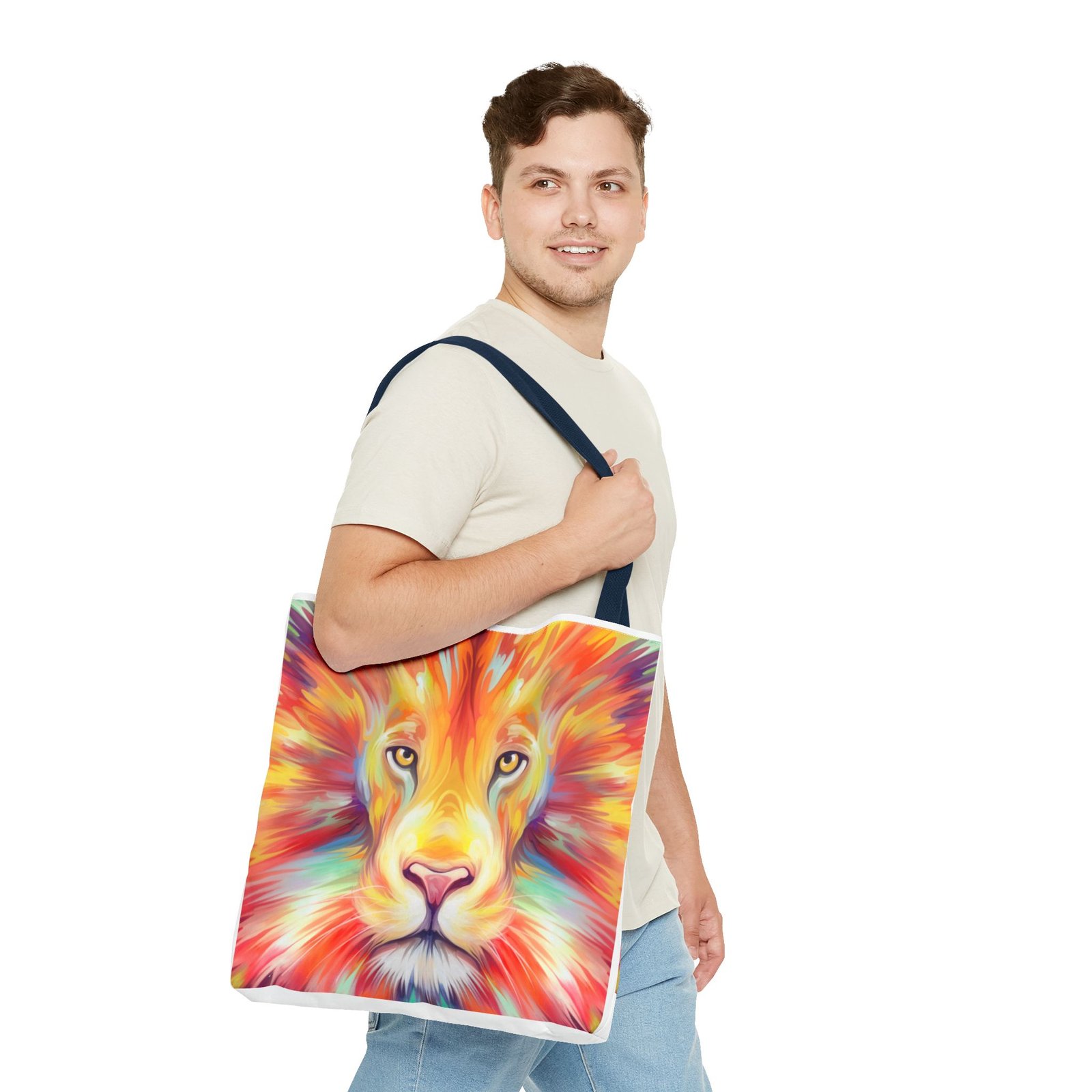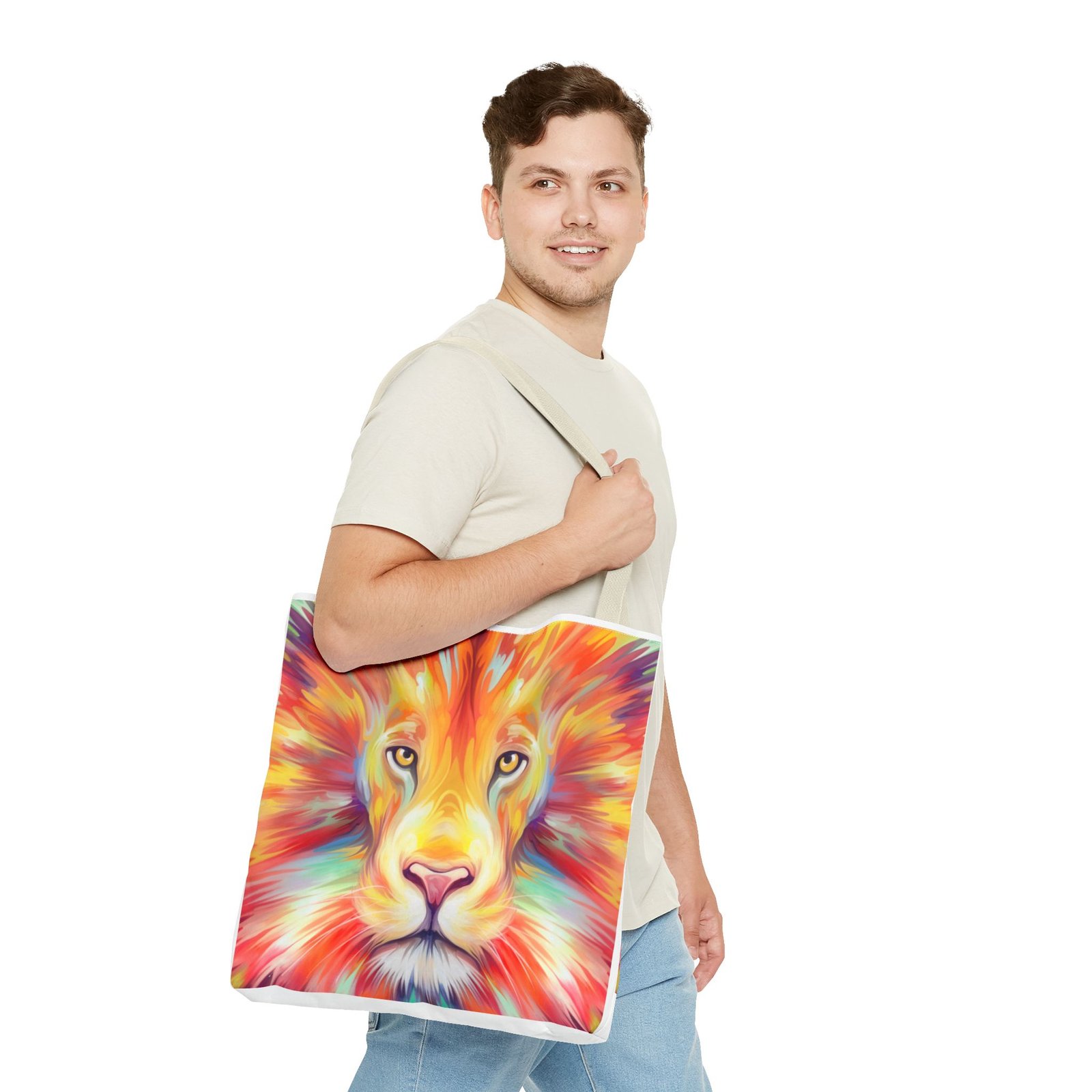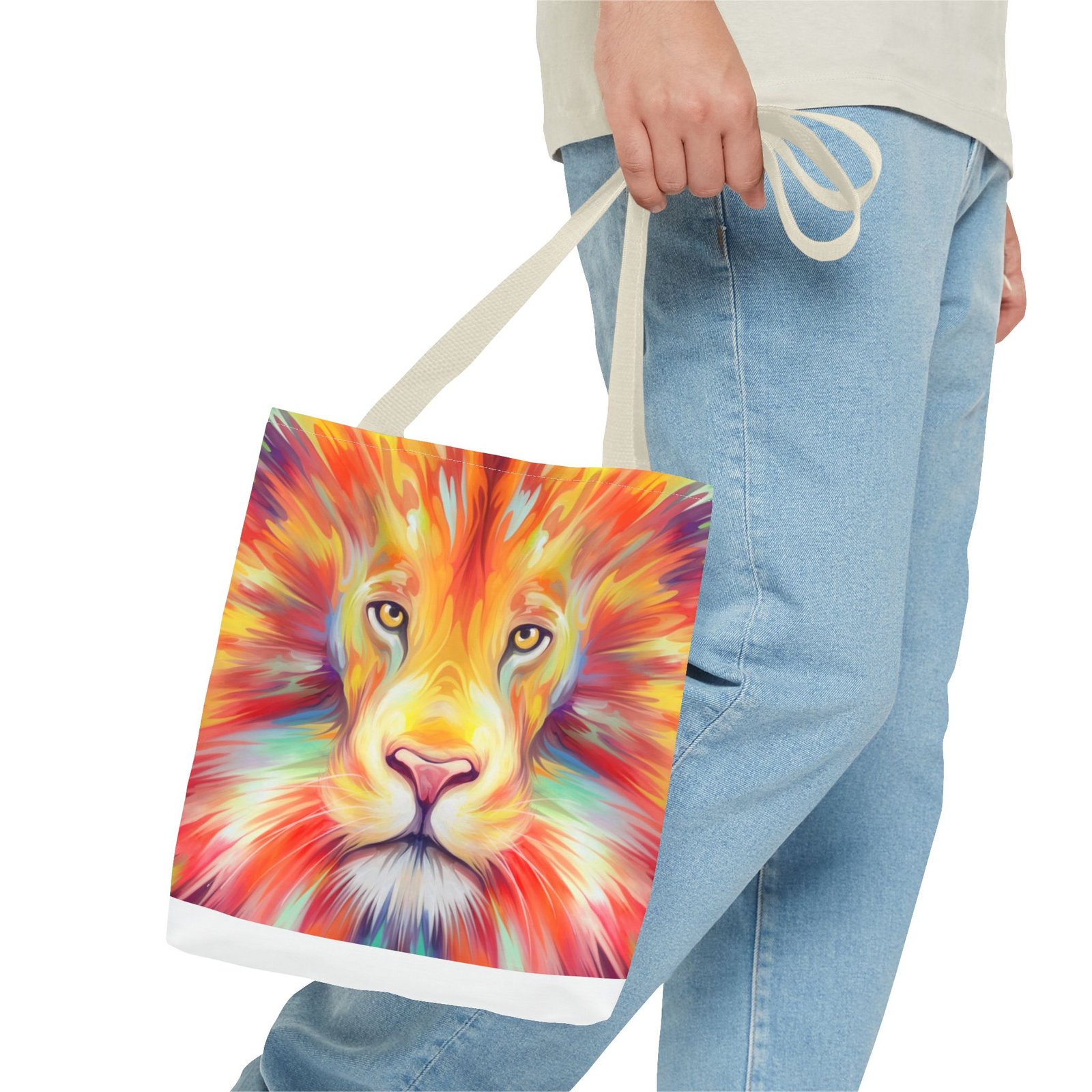 Introducing a vibrant Tote Bag that effortlessly combines style and functionality. This eye-catching design features a majestic lion, bursting with colors that reflect strength and courage. Perfect for both casual outings and daily errands, this tote captures the essence of an adventurous spirit. Whether at the beach, the gym, or simply running errands, this bag adds a splash of personality to any outfit. Ideal for animal lovers, nature enthusiasts, or anyone looking to make a bold statement. A thoughtful gift for birthdays, holidays, or to celebrate personal milestones, this tote is designed to inspire you every day.
