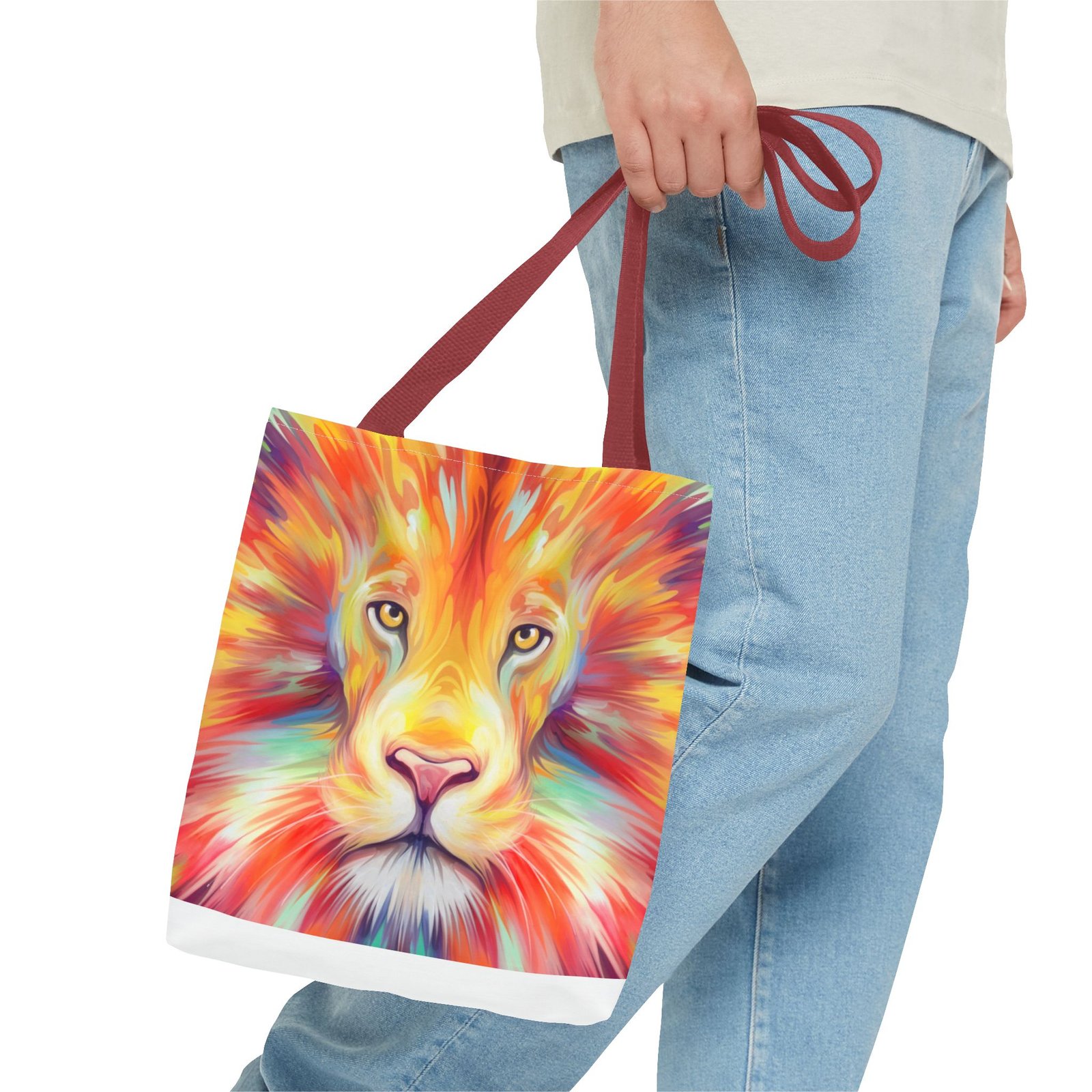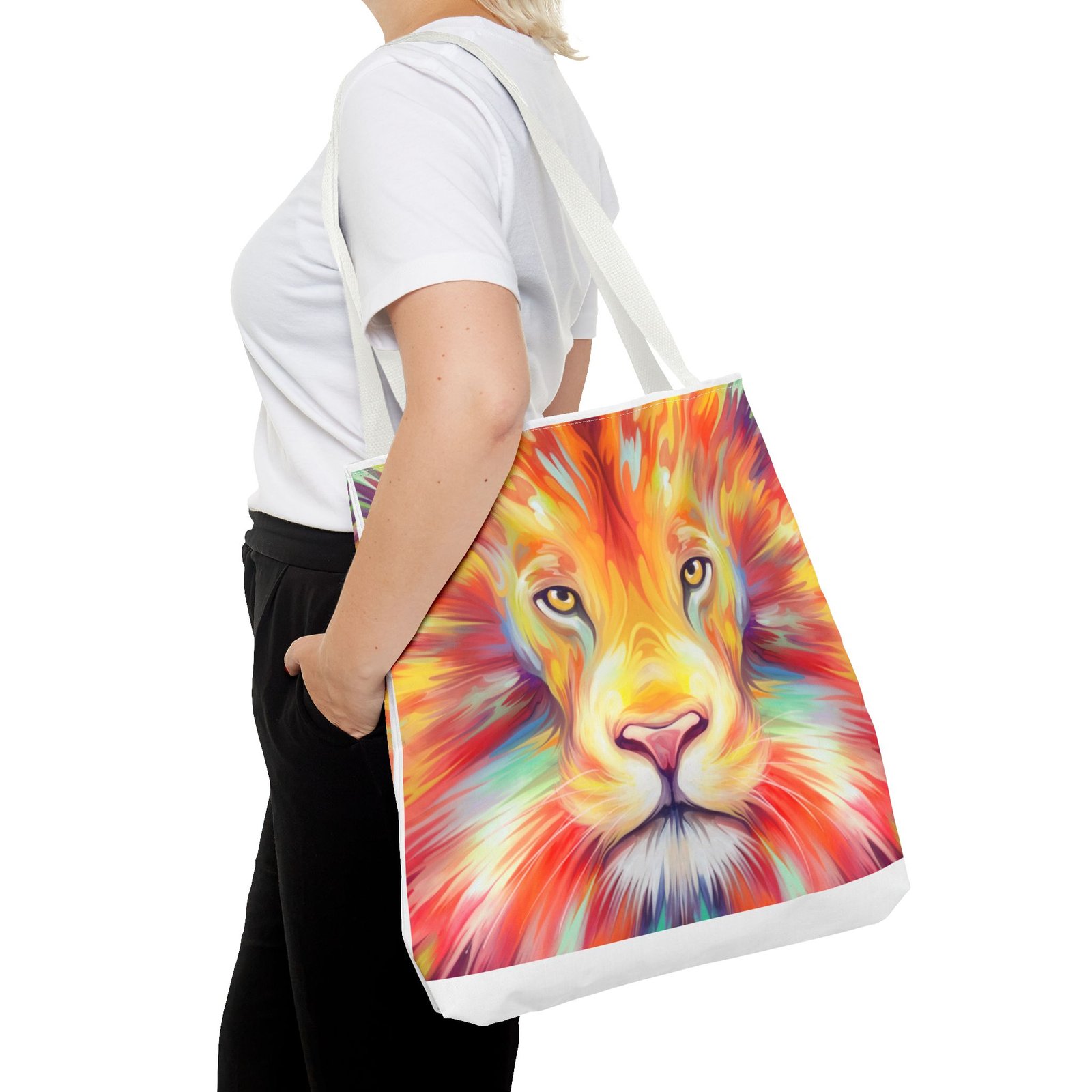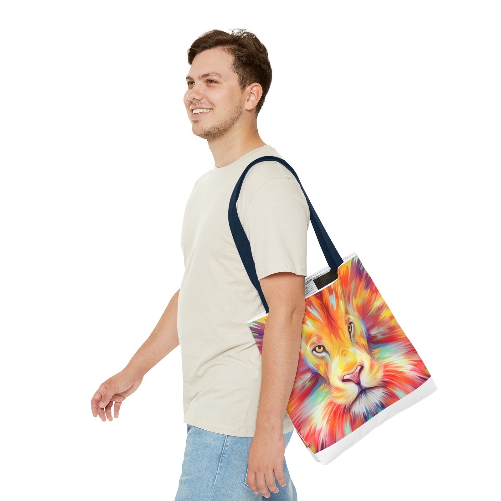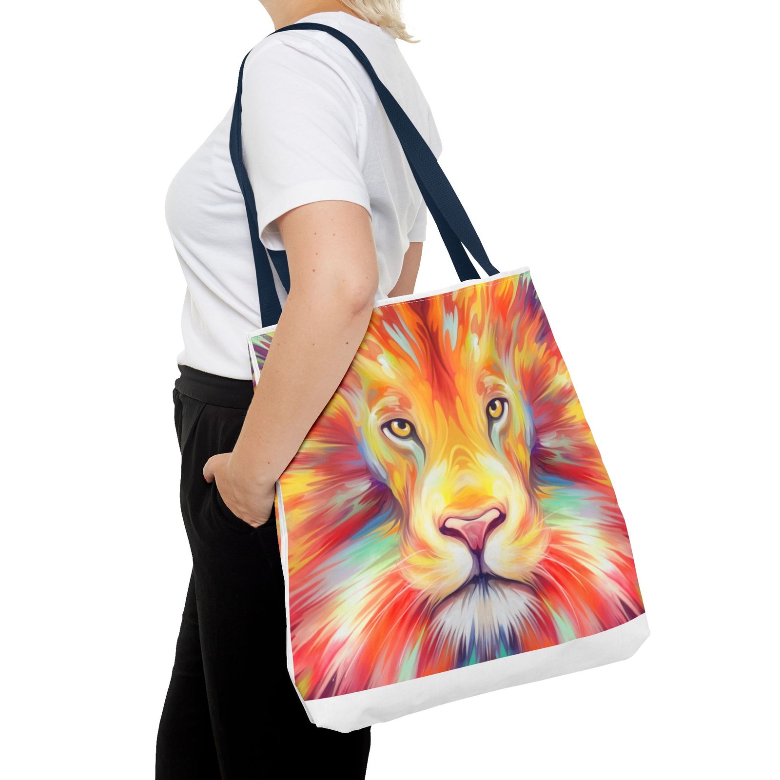 Introducing a vibrant Tote Bag that effortlessly combines style and functionality. This eye-catching design features a majestic lion, bursting with colors that reflect strength and courage. Perfect for both casual outings and daily errands, this tote captures the essence of an adventurous spirit. Whether at the beach, the gym, or simply running errands, this bag adds a splash of personality to any outfit. Ideal for animal lovers, nature enthusiasts, or anyone looking to make a bold statement. A thoughtful gift for birthdays, holidays, or to celebrate personal milestones, this tote is designed to inspire you every day.