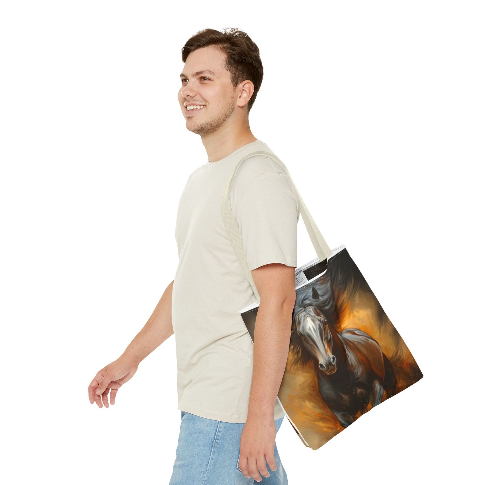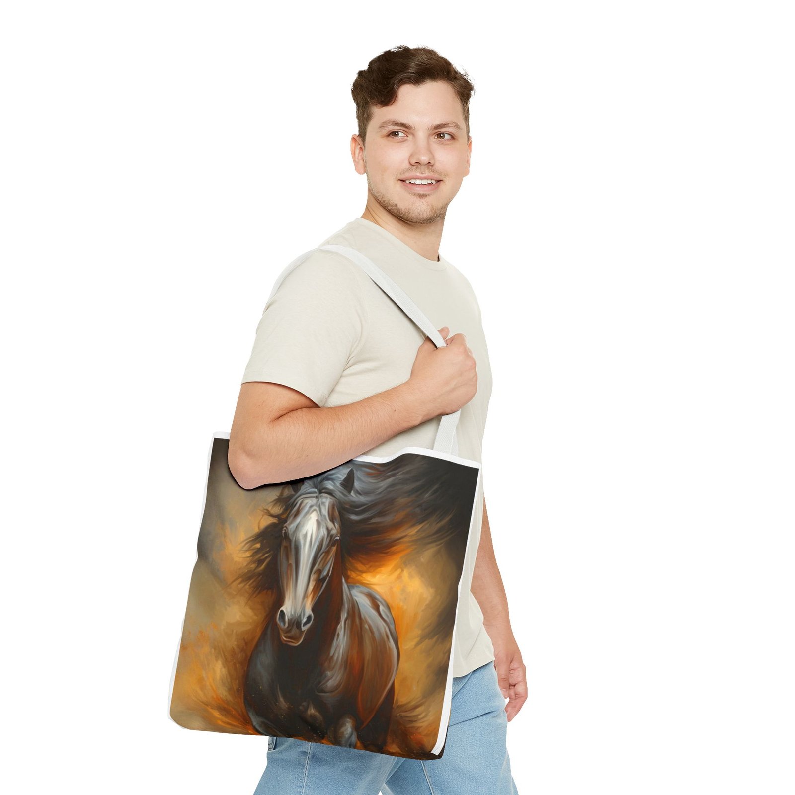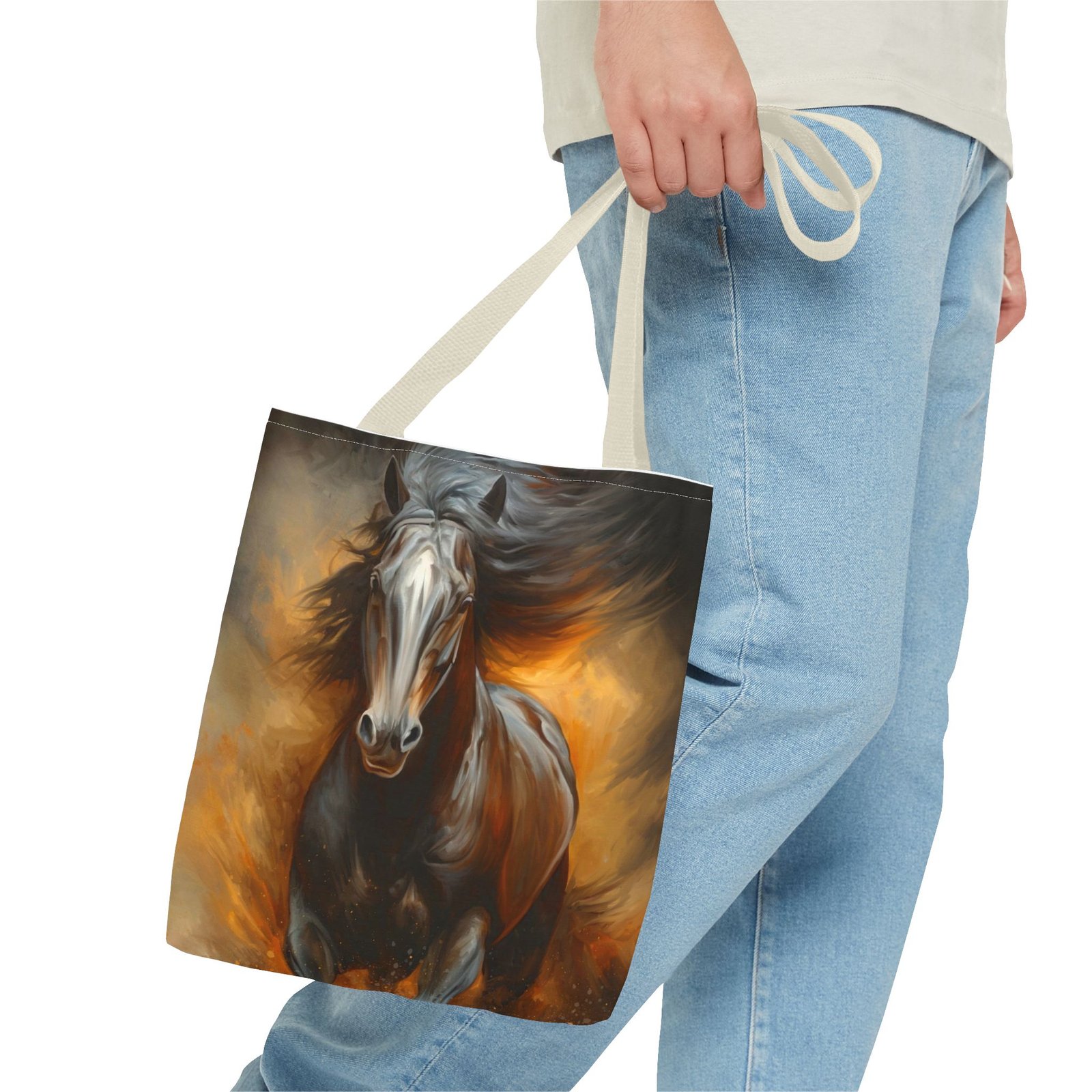 Introducing this stunning Tote Bag, perfect for those who appreciate art and functionality. The dynamic horse design evokes a sense of freedom and vitality, making it a stylish accessory for any occasion. Whether you’re heading to the office, a weekend getaway, or simply running errands, this tote bag adapts seamlessly to your lifestyle. It’s ideal for animal lovers, art enthusiasts, or anyone seeking a unique statement piece. Perfect for holidays like birthdays or special celebrations where you want to showcase your individuality, this tote bag adds flair and practicality to your daily routine.