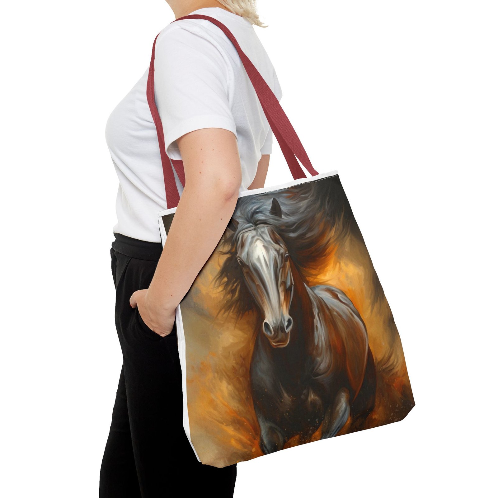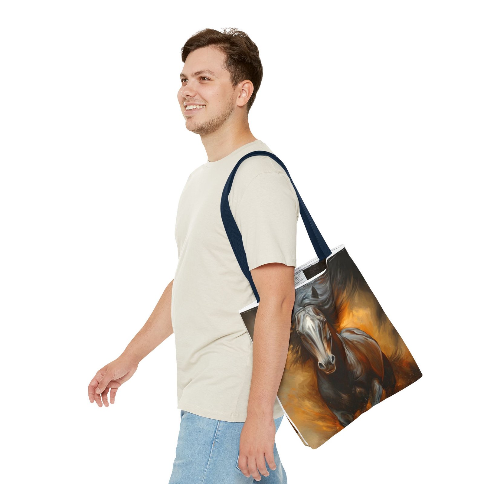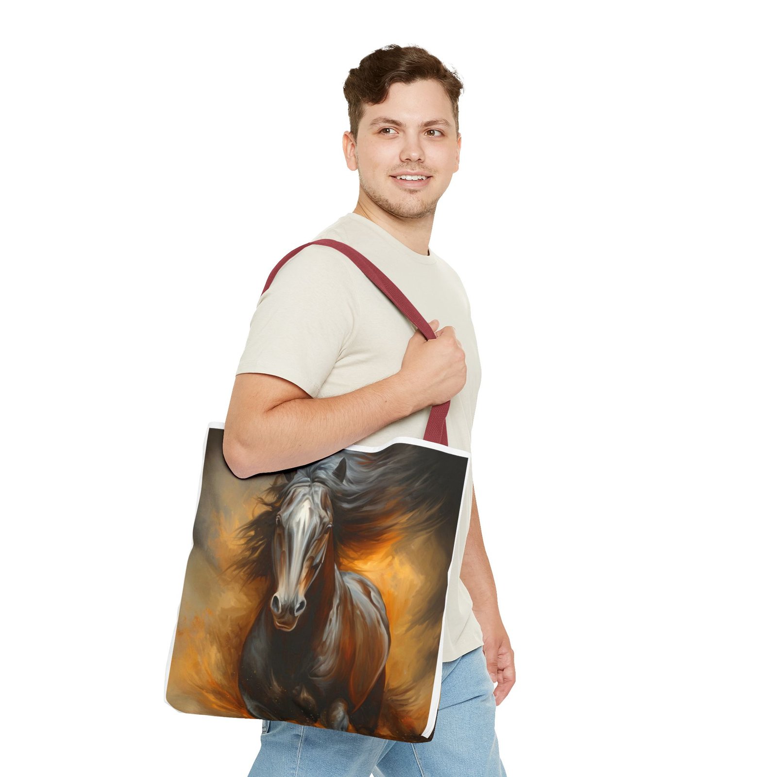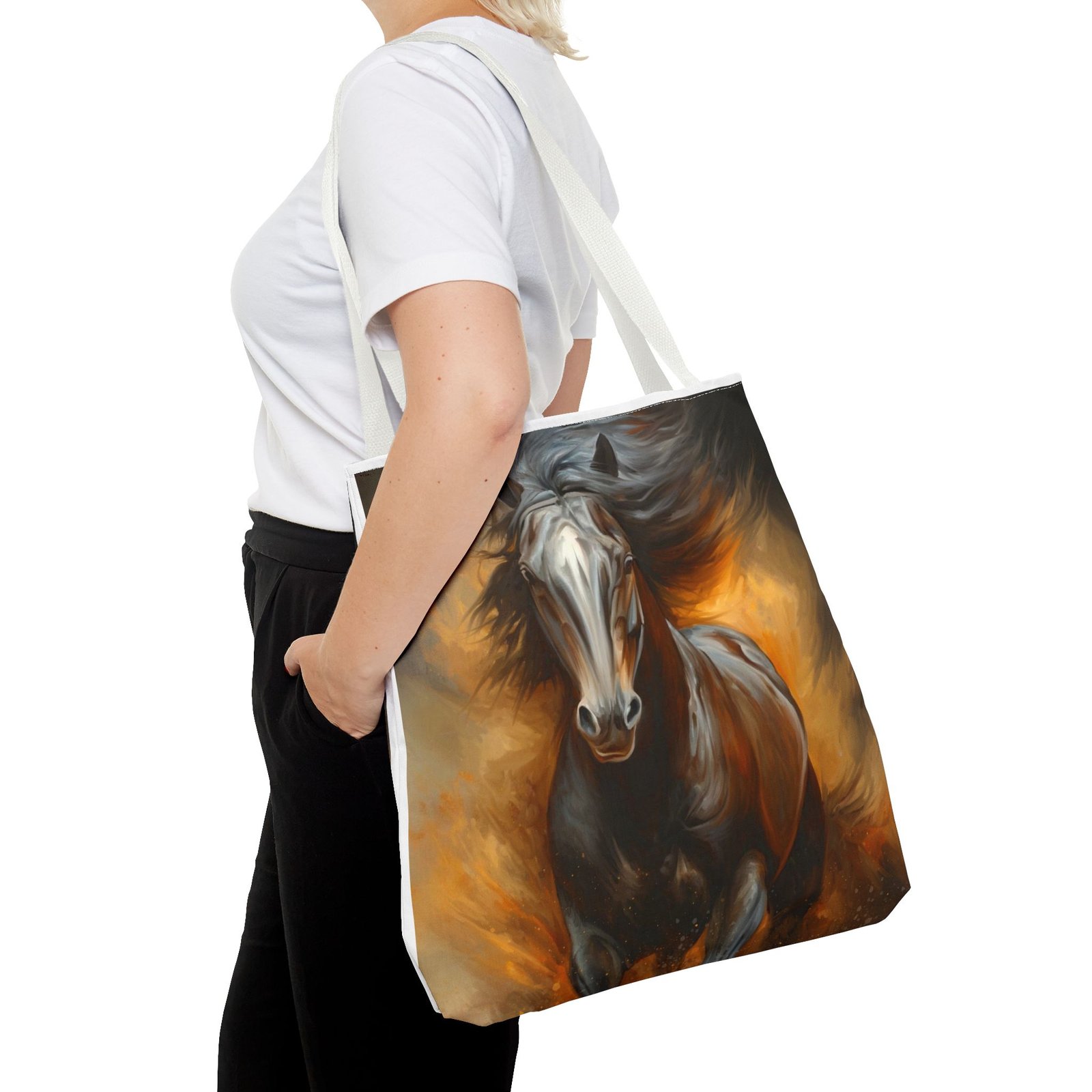 Introducing this stunning Tote Bag, perfect for those who appreciate art and functionality. The dynamic horse design evokes a sense of freedom and vitality, making it a stylish accessory for any occasion. Whether you’re heading to the office, a weekend getaway, or simply running errands, this tote bag adapts seamlessly to your lifestyle. It’s ideal for animal lovers, art enthusiasts, or anyone seeking a unique statement piece. Perfect for holidays like birthdays or special celebrations where you want to showcase your individuality, this tote bag adds flair and practicality to your daily routine.