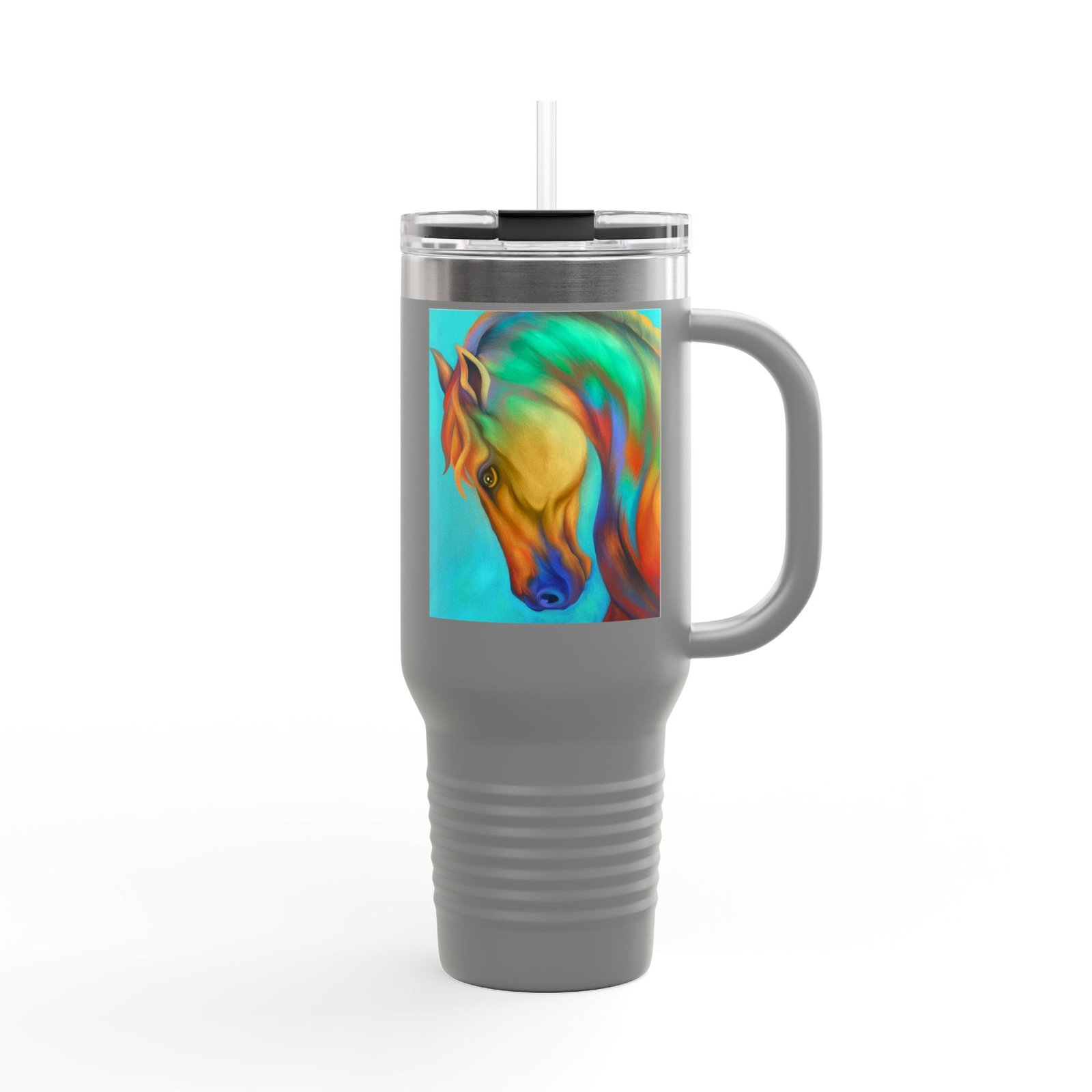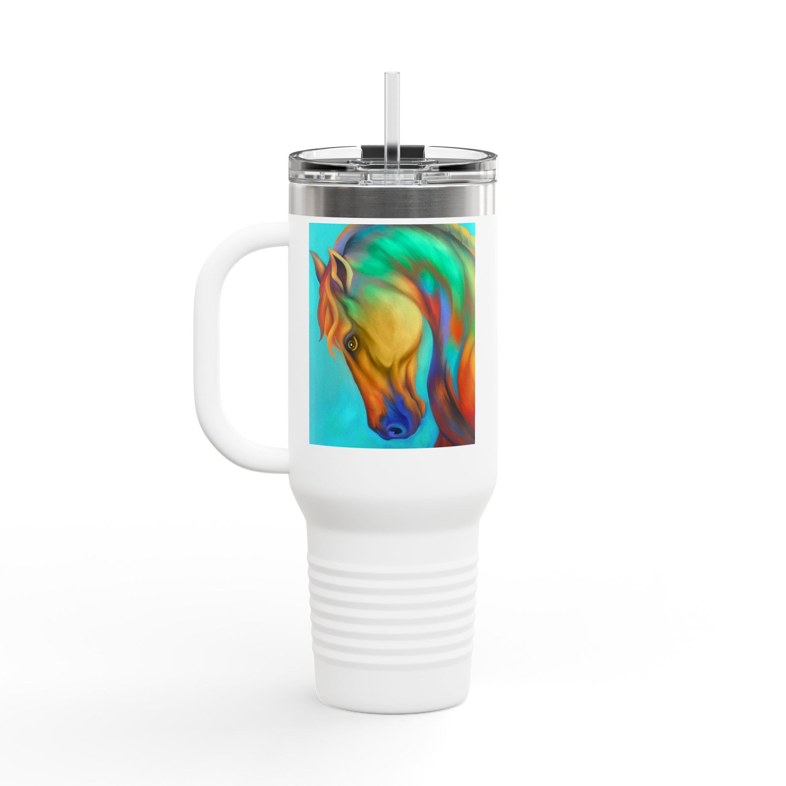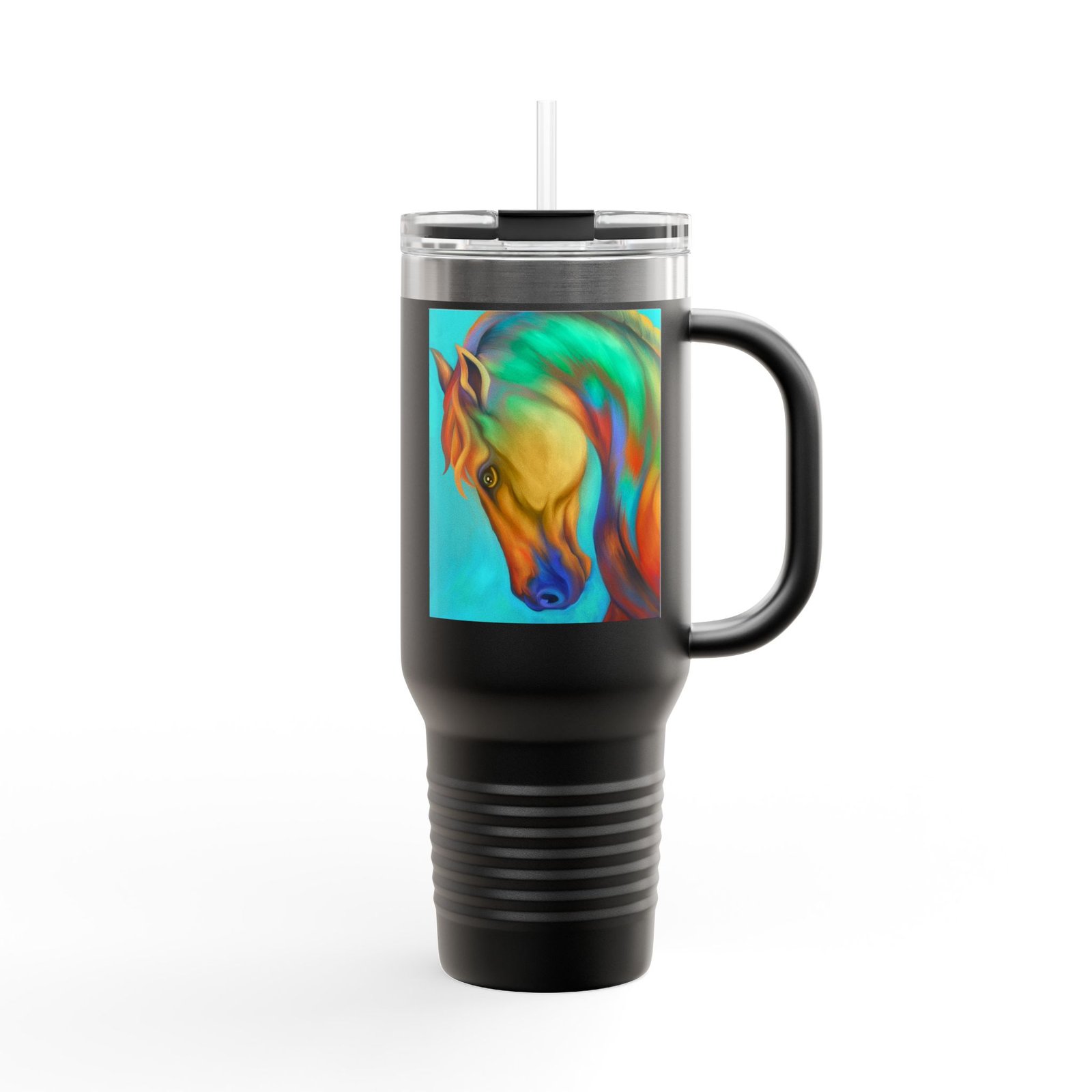 Travel Mug – Vibrant Horse Insulated Travel Mug, 40oz – Colorful Coffee Cup for Animal Lovers, Great for Gifts, Office Use, Outdoor Adventures