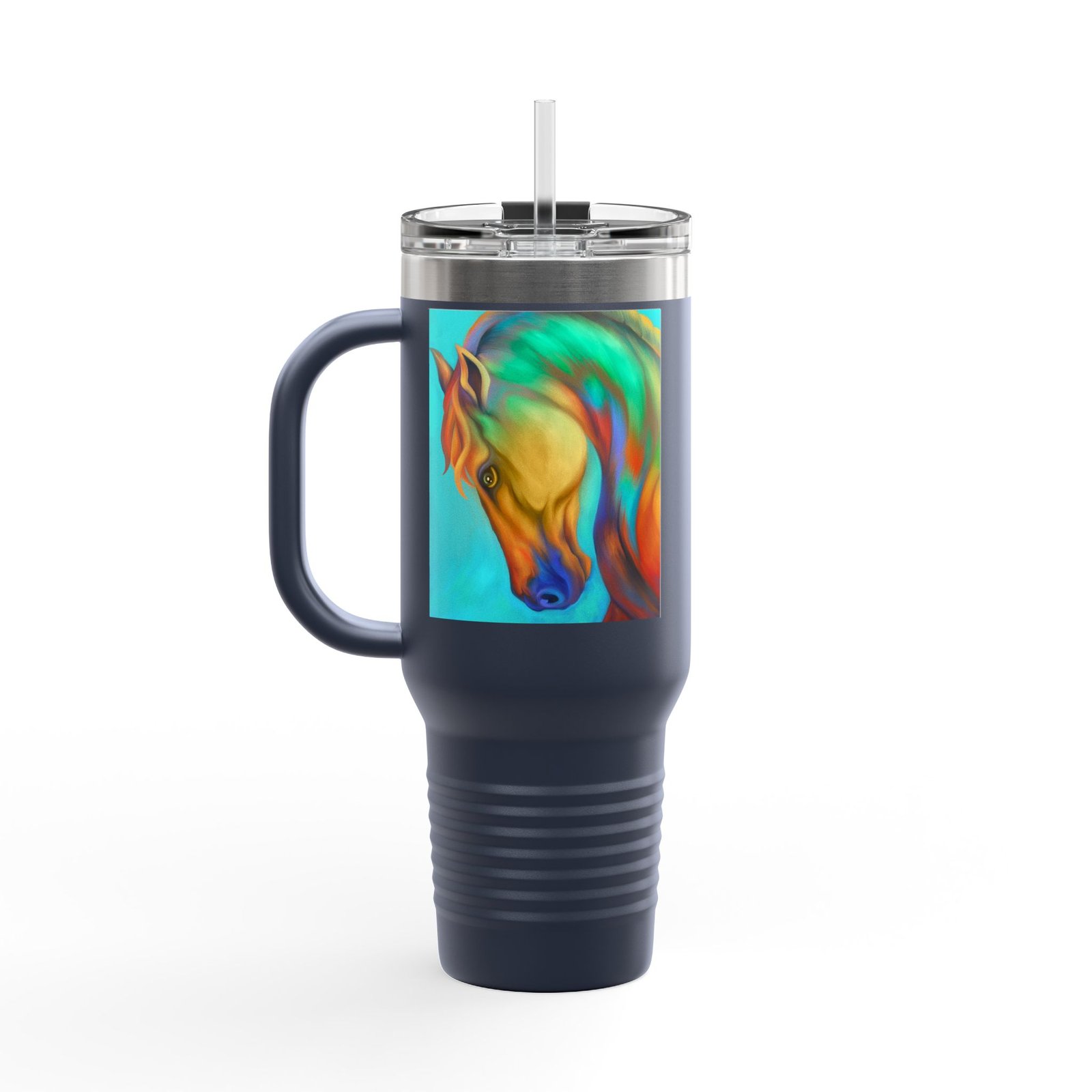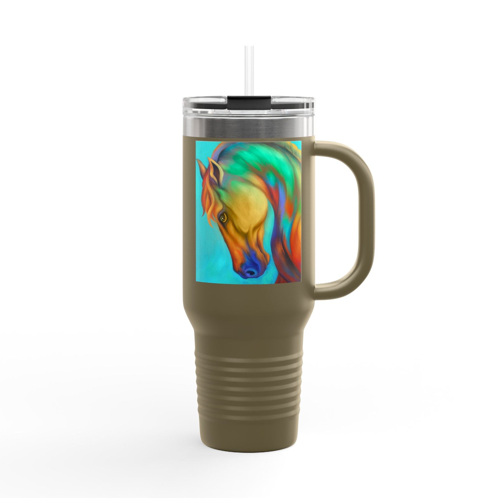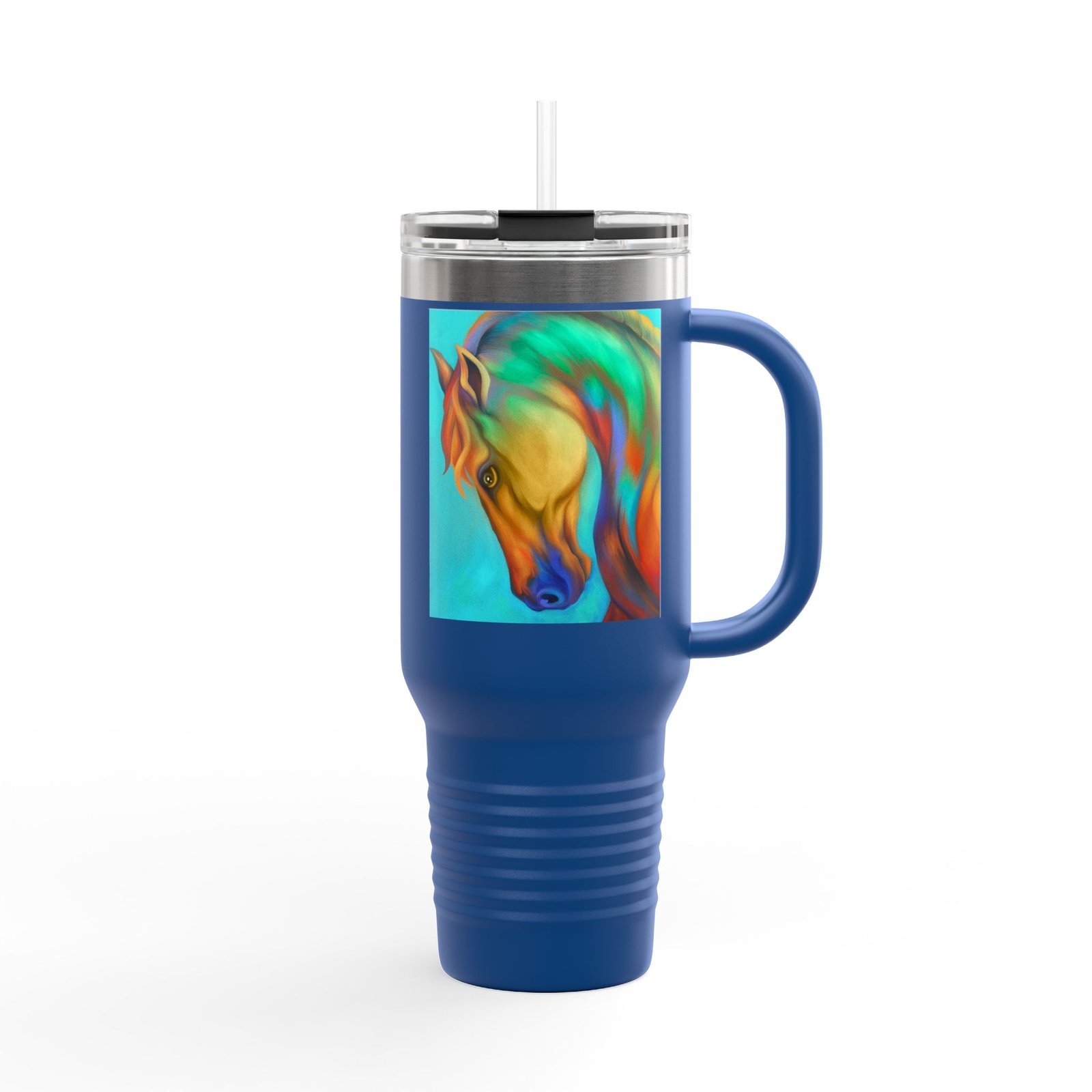 Travel Mug – Vibrant Horse Insulated Travel Mug, 40oz – Colorful Coffee Cup for Animal Lovers, Great for Gifts, Office Use, Outdoor Adventures