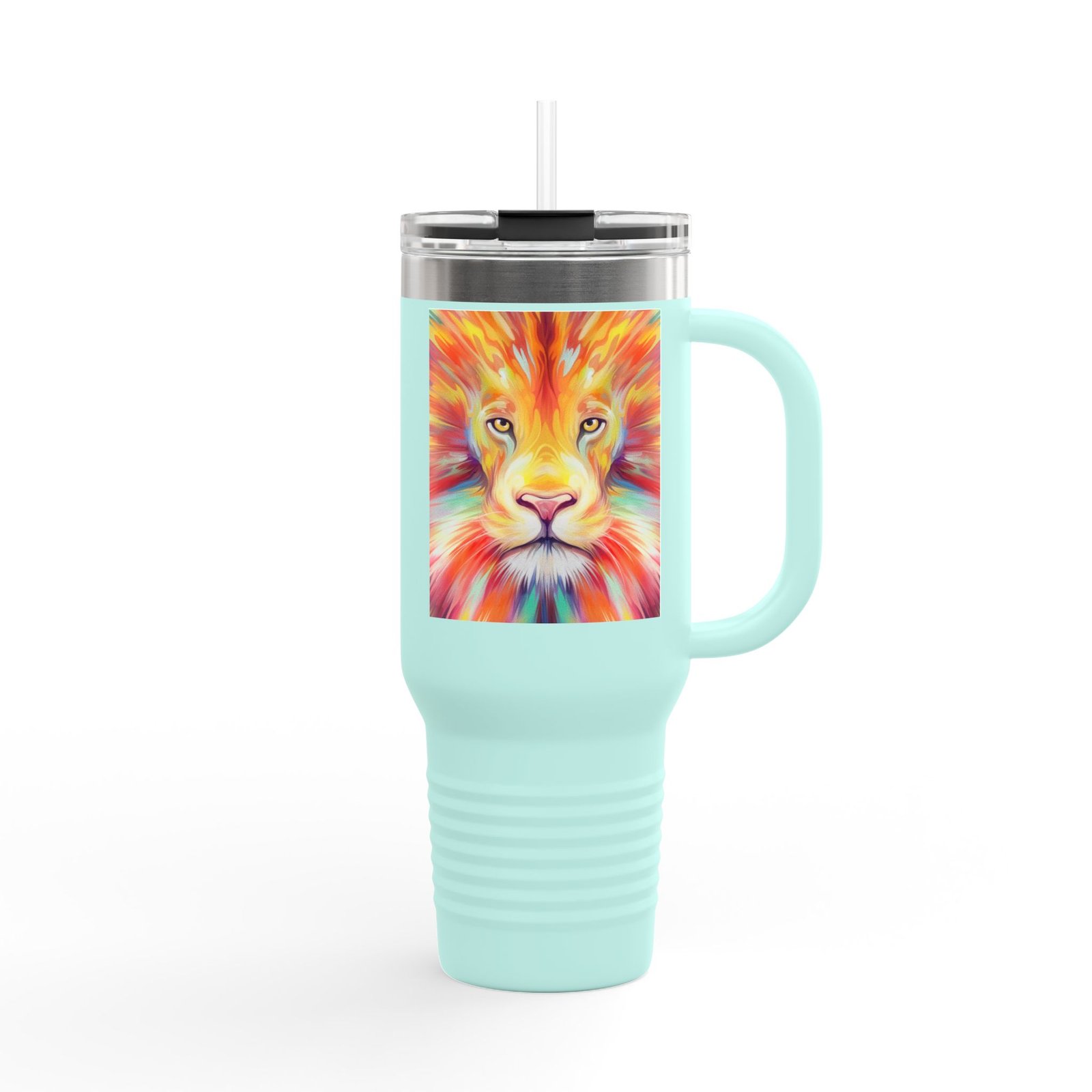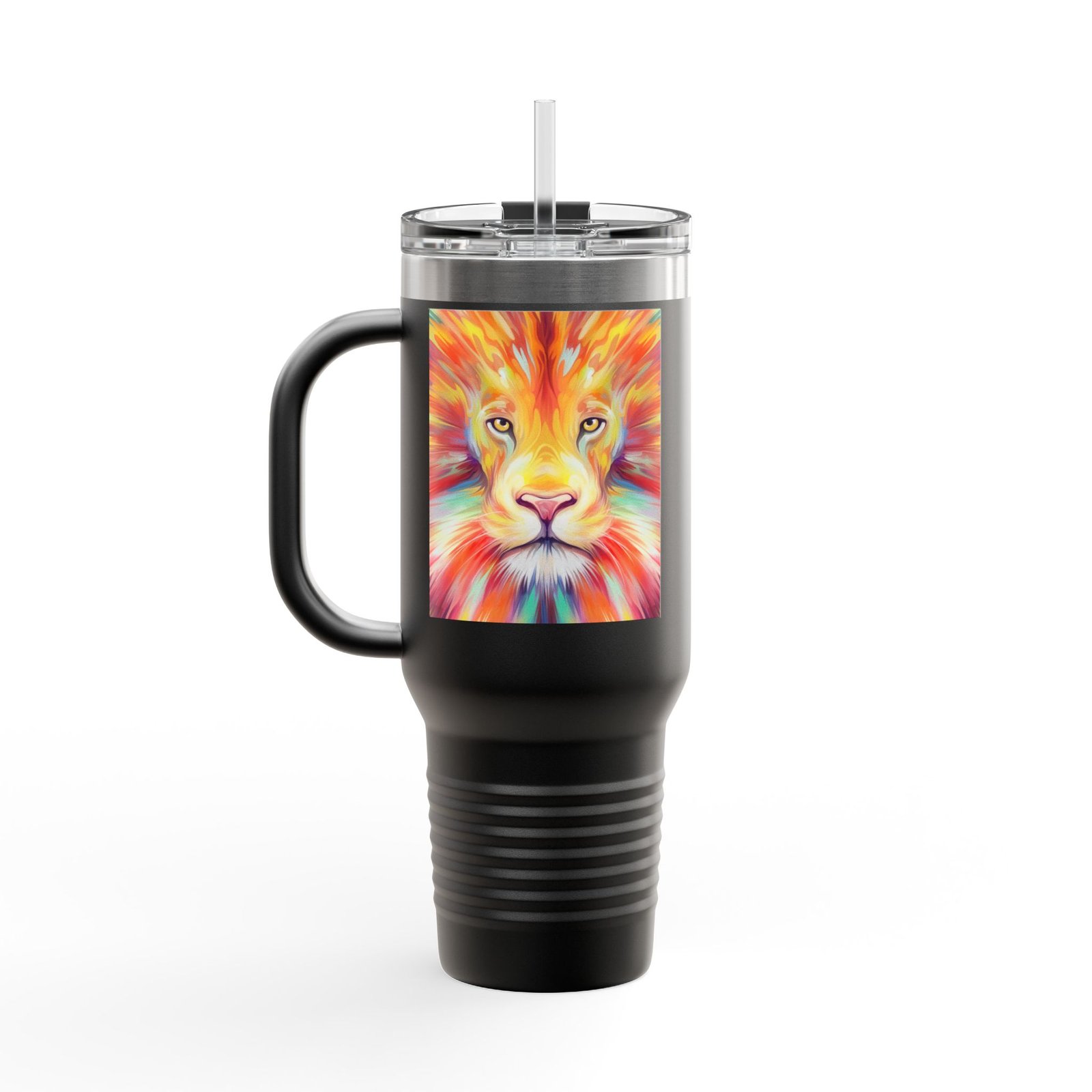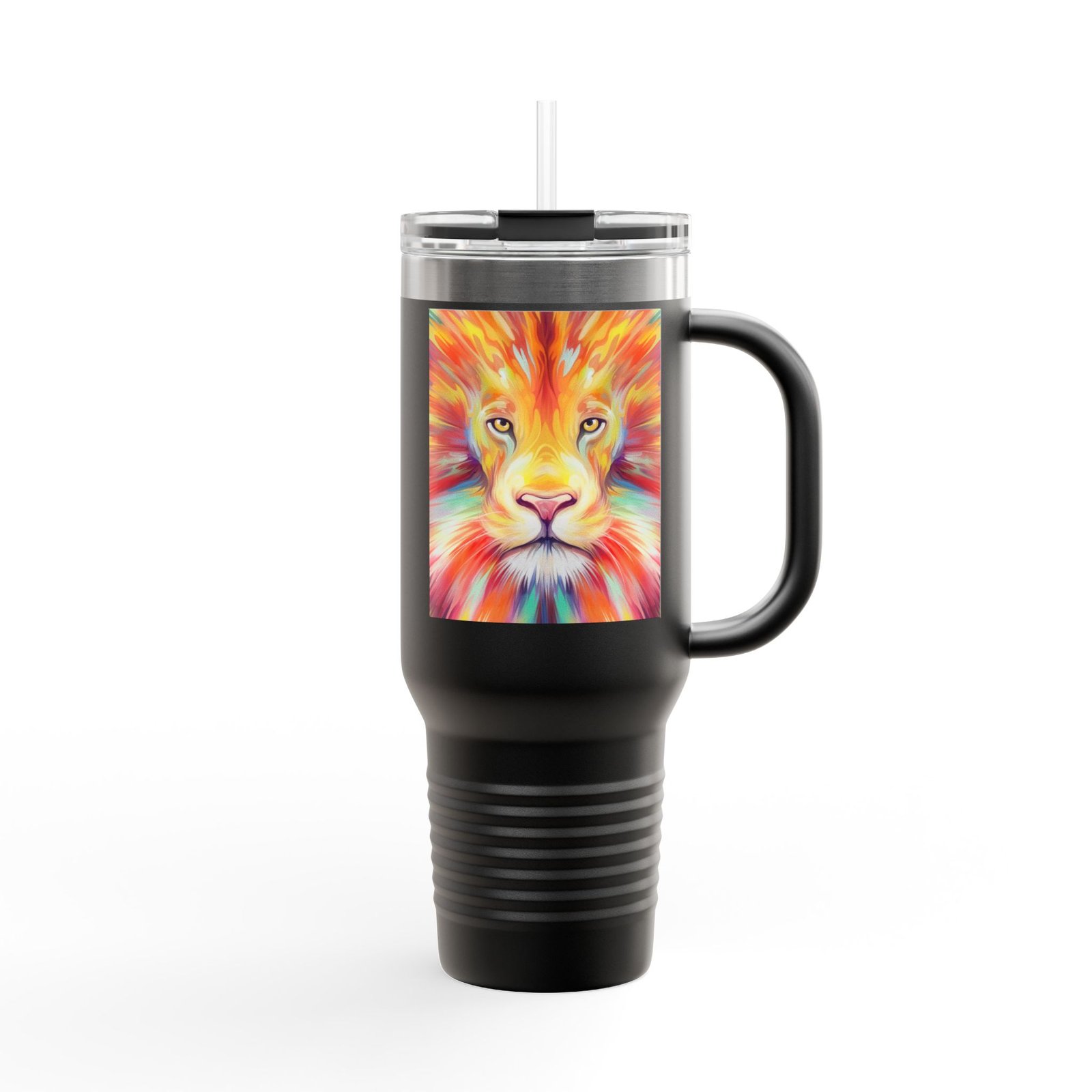 Travel Mug – Vibrant Lion Insulated Travel Mug – 40oz, Colorful Mug, Animal Lover Gift, Coffee Cup, Travel Tumbler, Unique Drinkware