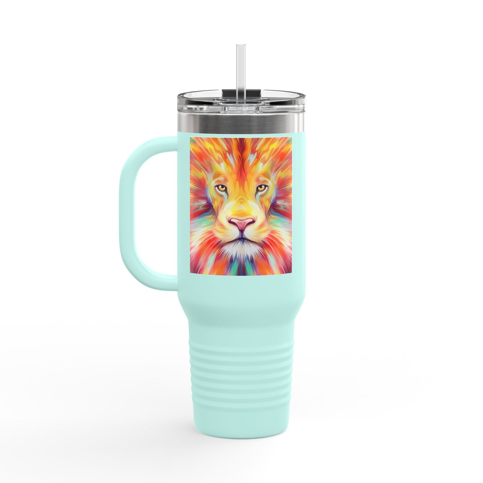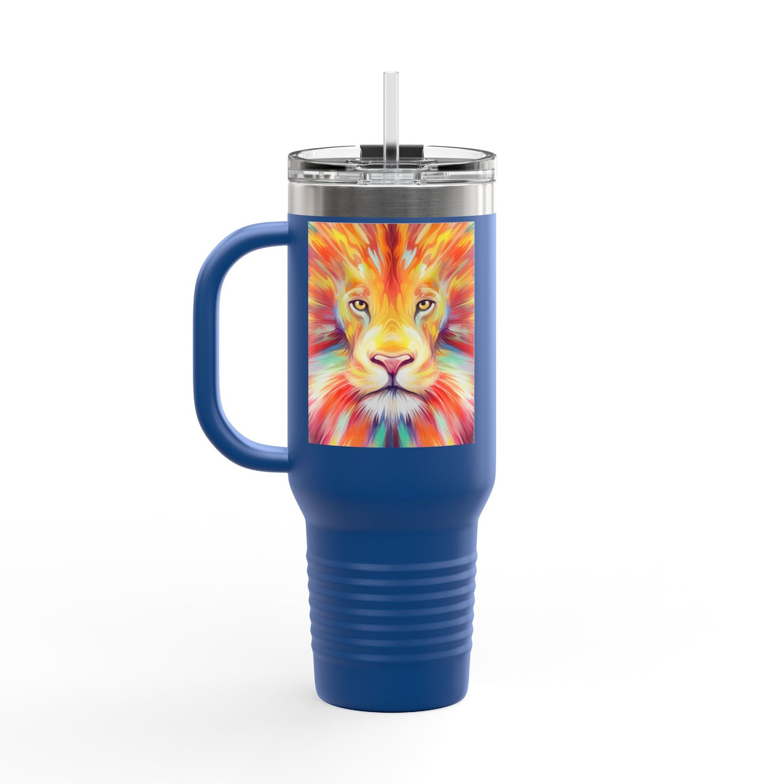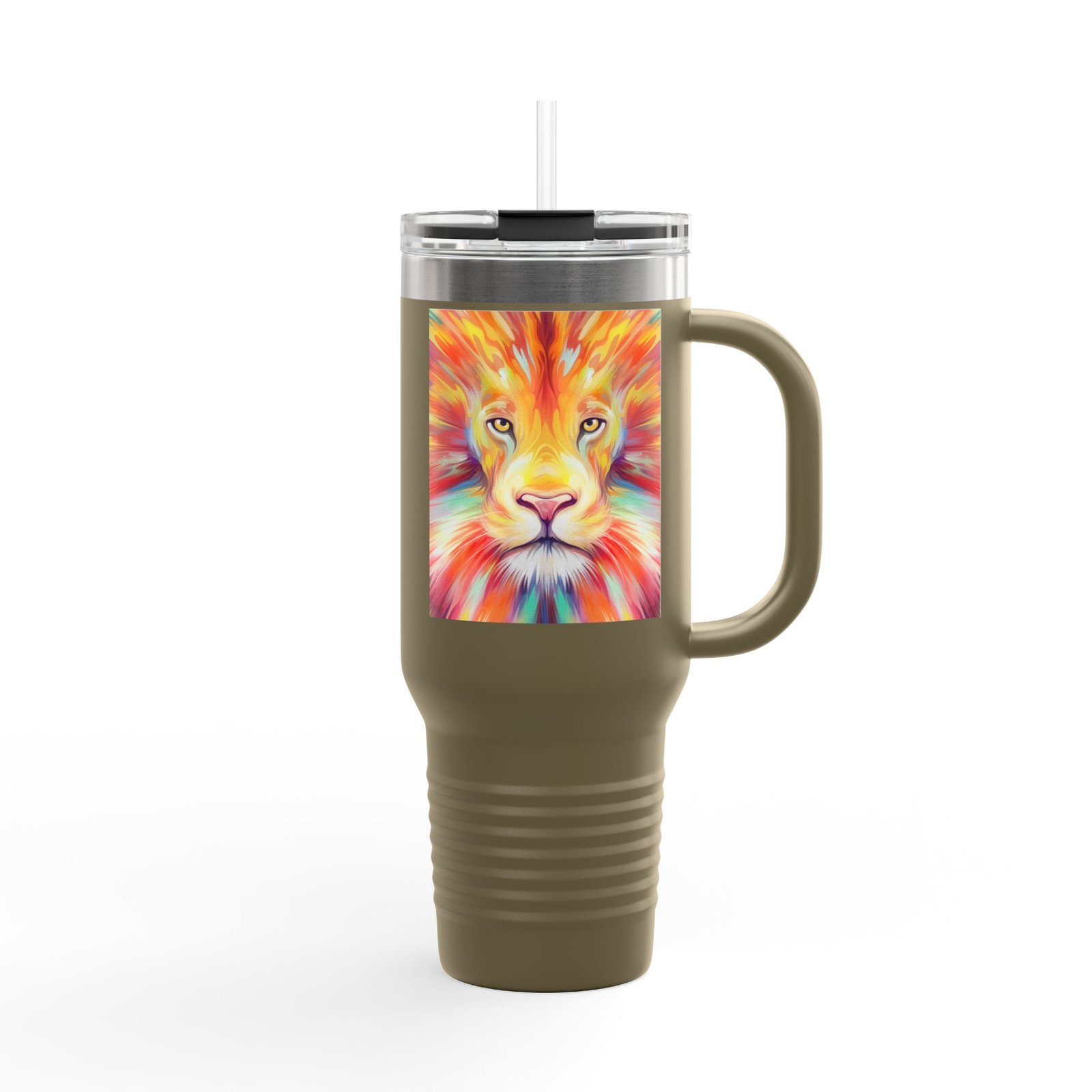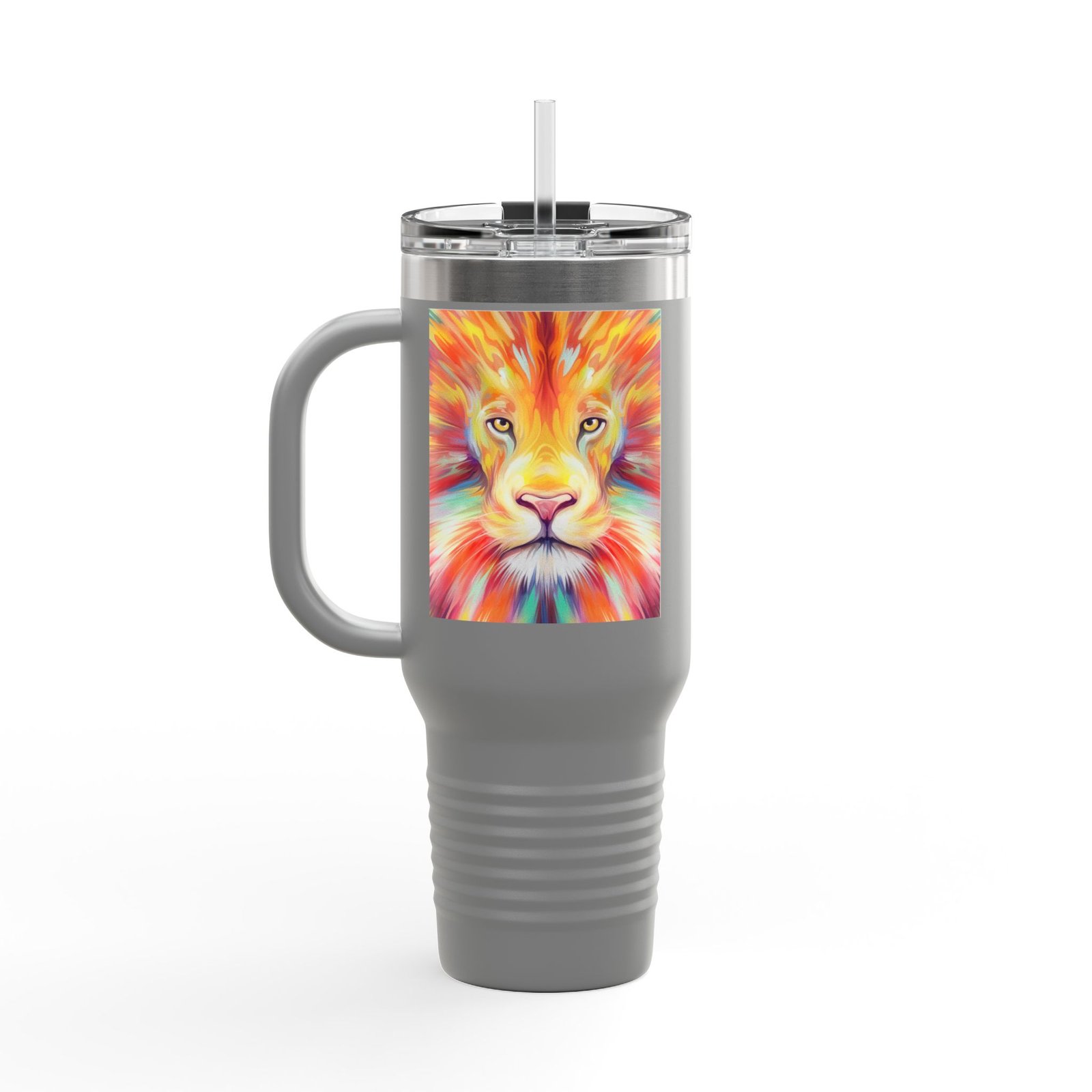 Travel Mug – Vibrant Lion Insulated Travel Mug – 40oz, Colorful Mug, Animal Lover Gift, Coffee Cup, Travel Tumbler, Unique Drinkware